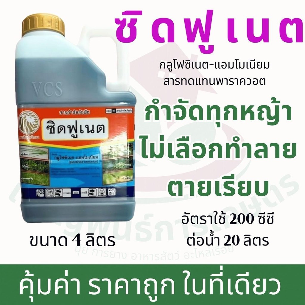 ซิดฟูเนต 4ลิตร น้ำฟ้าสุตรพรีเมี่ยม* กลูโฟซิเนต-แอมโมเนียม สารควบคุมการเจริญเติบโตวัชพืช กำจัดได้ทั้งใบแคบและใบกว้าง กำจั