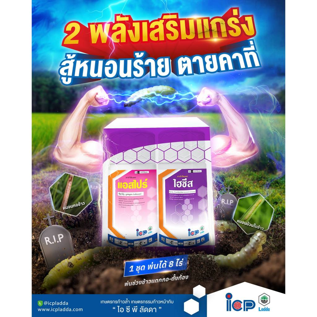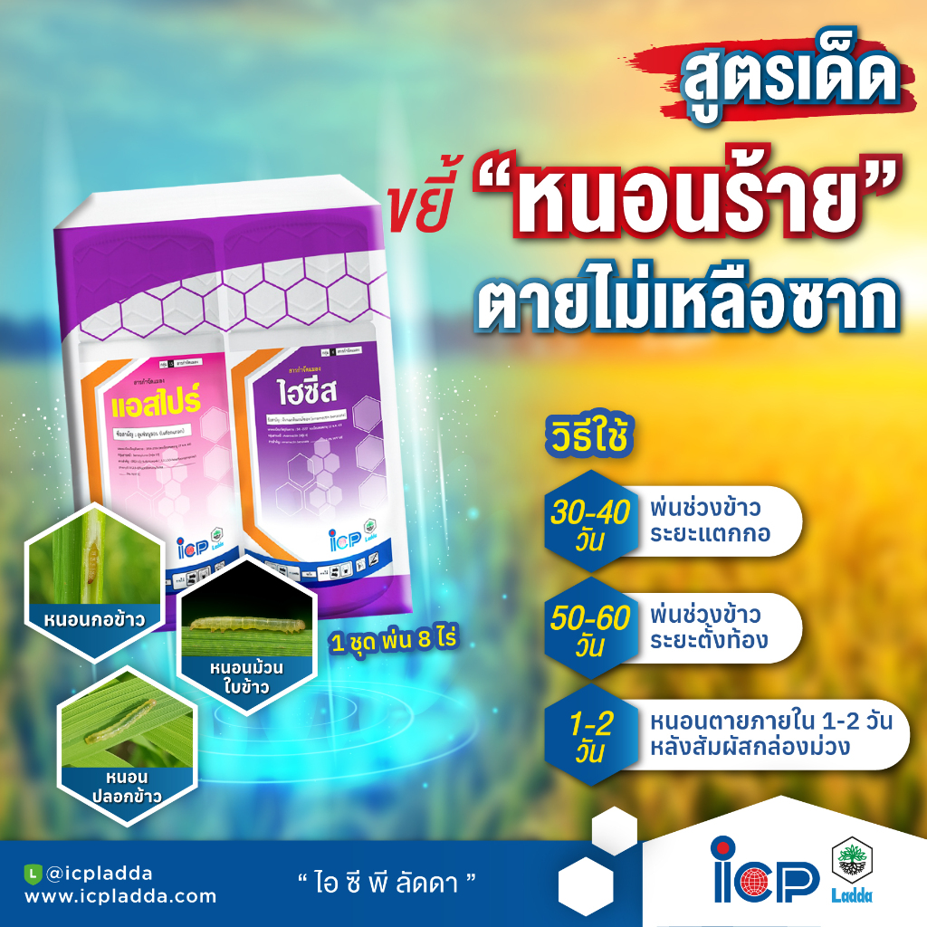 ชุดกล่องม่วง (ของแท้)( แอสไปร์ + ไฮซีส – ลูเฟนนูรอน + อีมาเมกติน ) กำจัดหนอน หนอนกอ หนอนม้วนใบ เจาะ