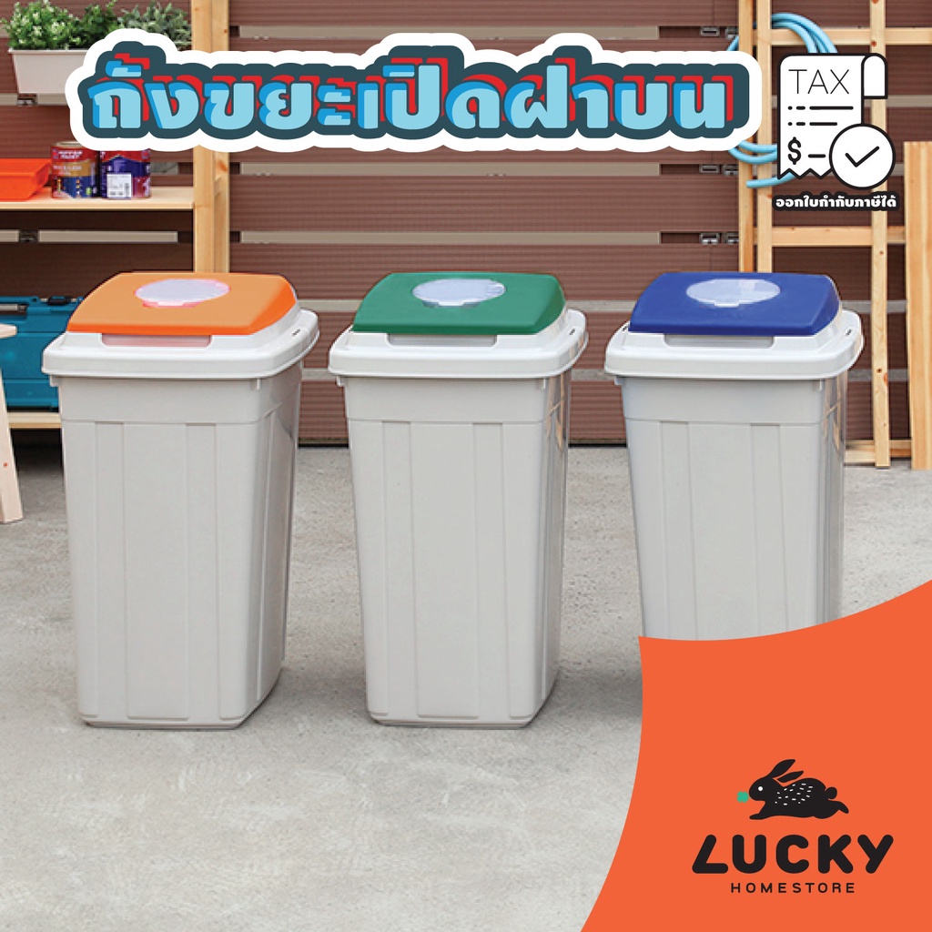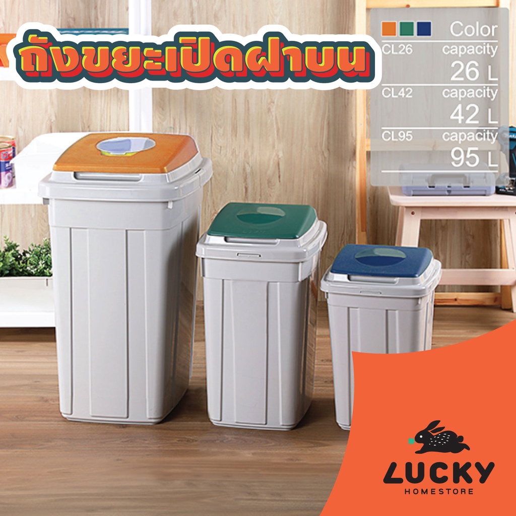 LUCKY HOME ถังขยะเปิดฝาบน CL-95 ขนาด (วัดด้านยาวสุดรวมฝา)(กว้าง x ลึก x สูง): 42 x 55 x 76 cm