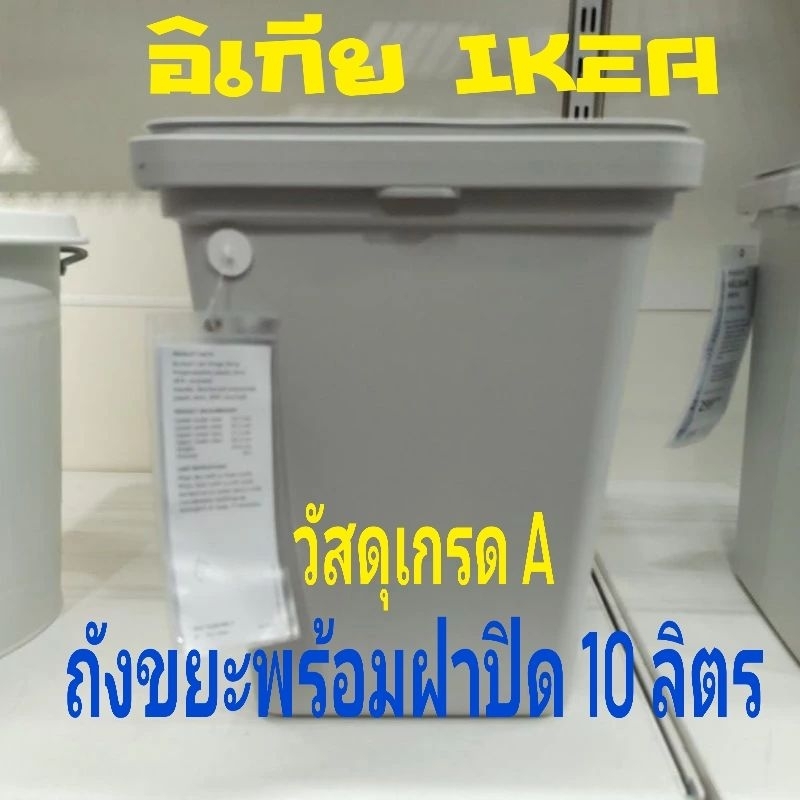 IKEA,แท้,ถังขยะอิเกีย,อีเกีย, ikea,ถังขยะพลาสติก,ถังขยะมีฝาปิด,เทาอ่อน,10ลิตร