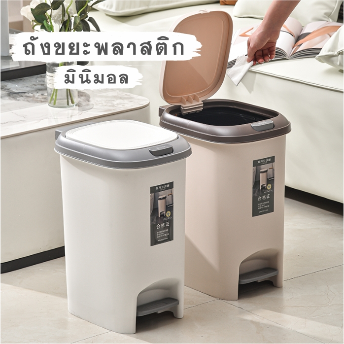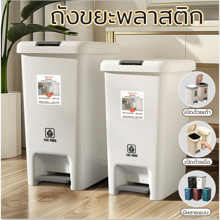 JJdaily2 ถังขยะพลาสติก มีฝาปิด เปิด-ปิดง่าย ด้วยมือ และแบบเท้า กันน้ำ เก็บกลิ่น มีหลายขนาด ขายดี