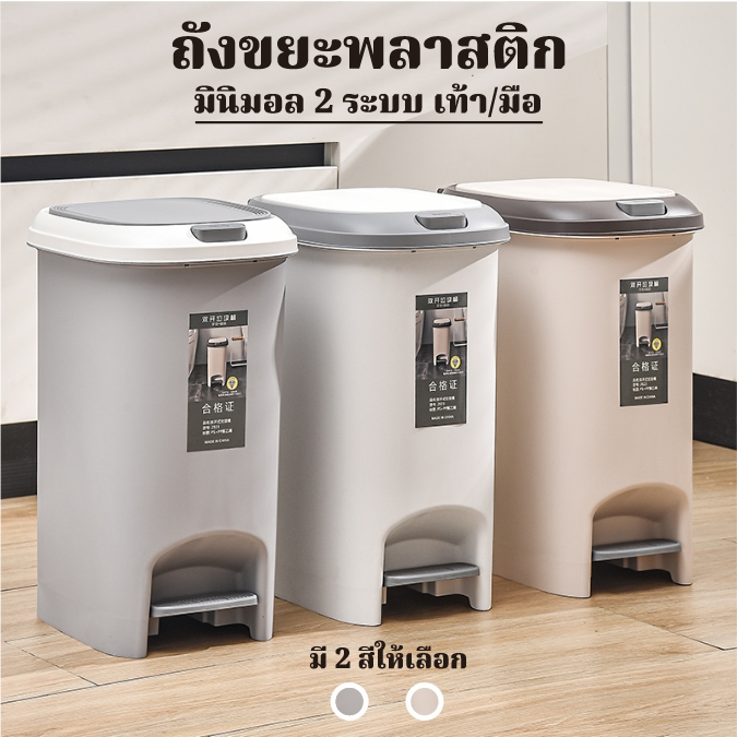 KANO 【พร้อมส่ง】ถังขยะ แบบเปิดมือ-เปิดเท้า ถังพลาสติกมีฝาปิด แข็งแรงทนทาน ใช้กับครัว ห้องนั่งเล่น และสำนักงาน