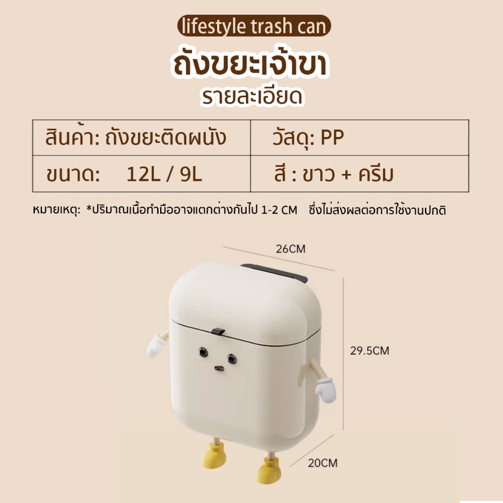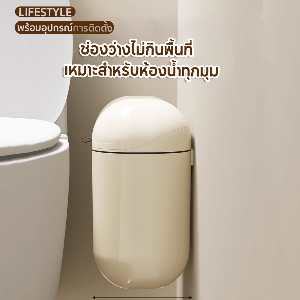 🏷️[Home] ถังขยะติดผนัง พร้อมฝาปิดถังขยะ สไตล์มินิมอล สีครีมคุณภาพสูง 9L/12L ถังขยะในห้องน้ํา น้องเจ้าขา