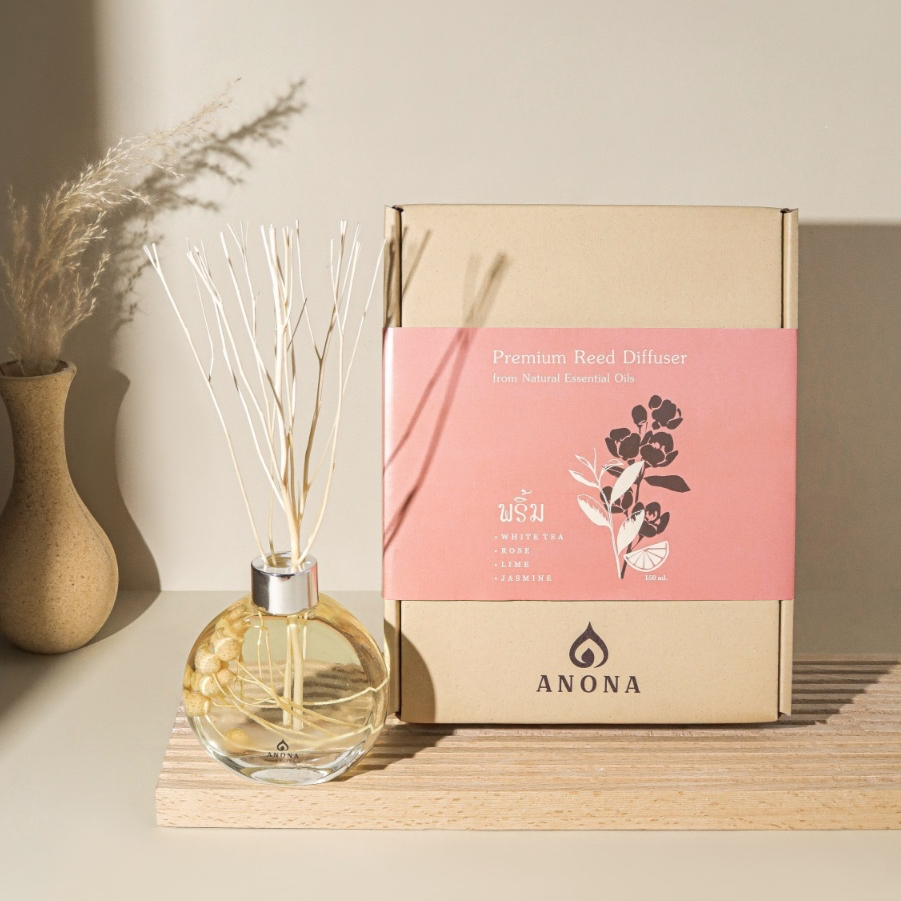 ANONA Thailand| Premium Reed Diffuser ก้านไม้หอมปรับอากาศกลิ่นพริ้ม (ชาขาว กุหลาบ มะนาว)
