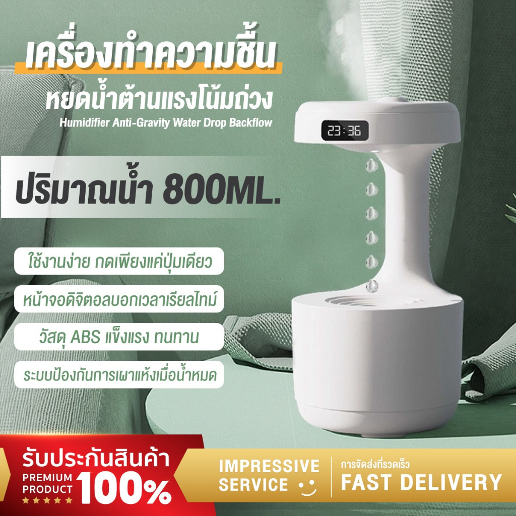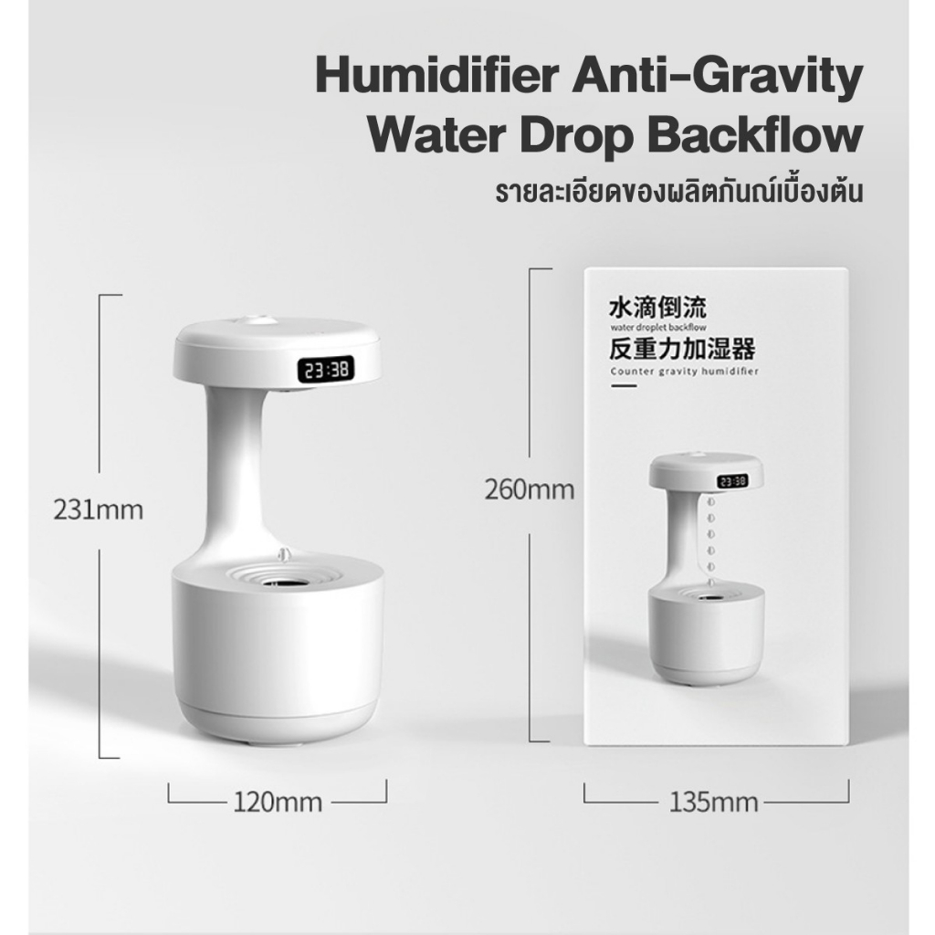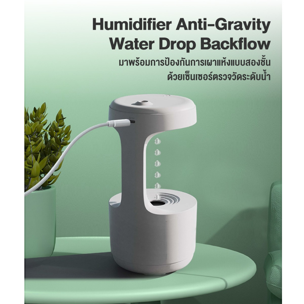 Anti-gravity Water Drop Humidifier เครื่องพ่นไอน้ำในห้อง ทำงานเงียบ เครื่องทำความชื้นอโรม่า