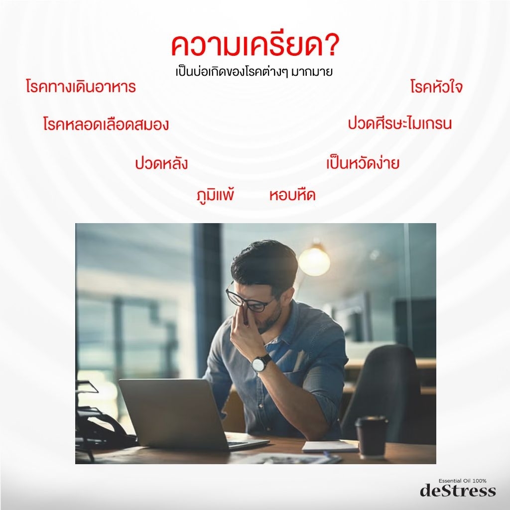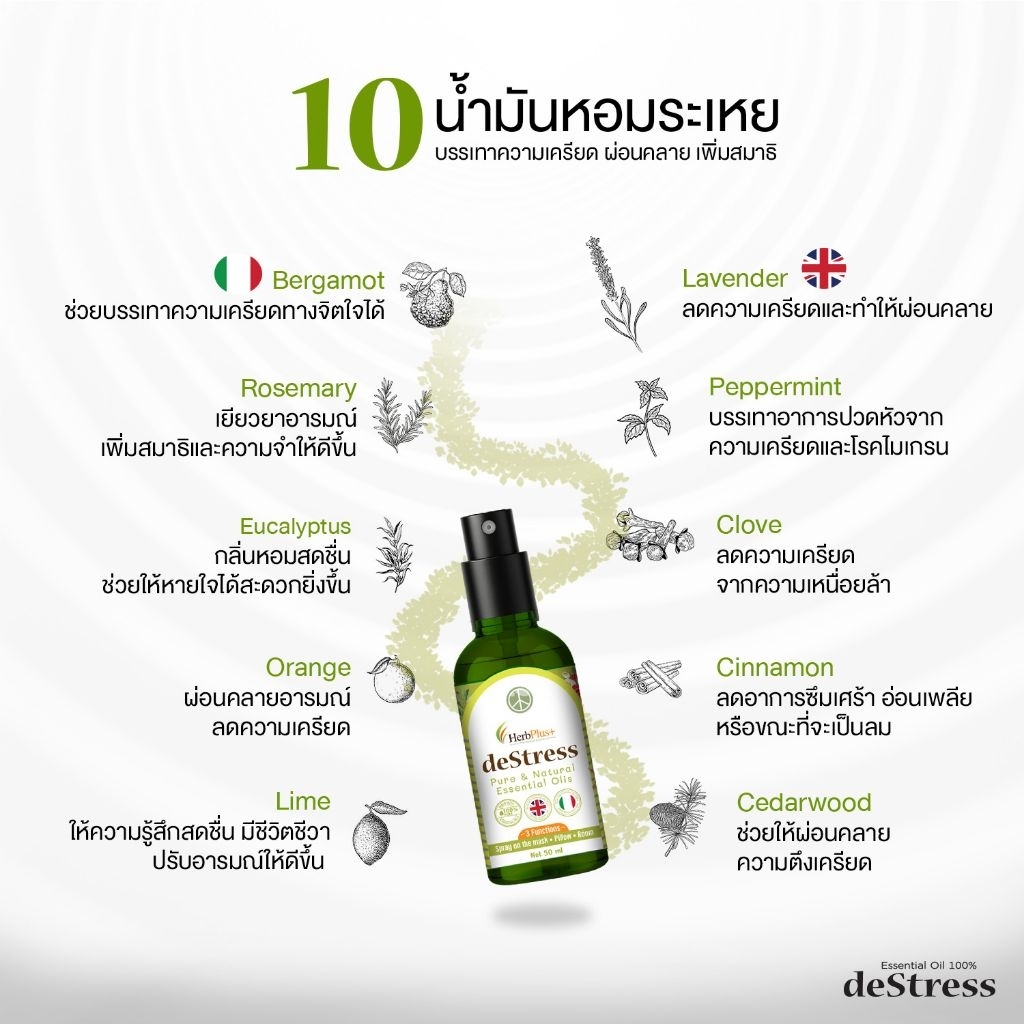 deStress 50ml. สเปรย์น้ำมันหอมระเหยคลายเครียด ออร์แกนิก 100% จากอิตาลีและอังกฤษ กลิ่นหอมสดชื่น ผ่อนคลายยาวนาน