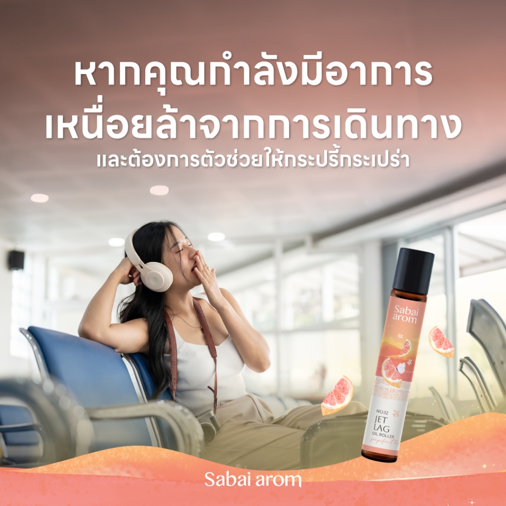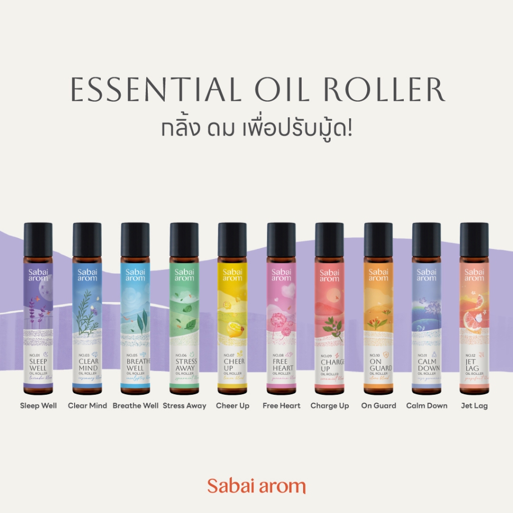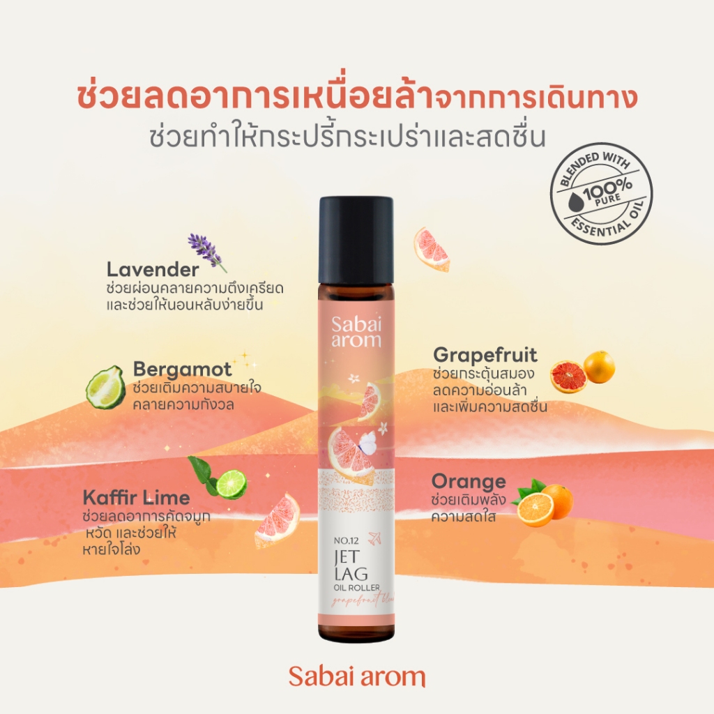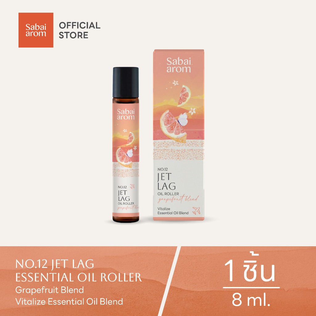 SabaiaromNo.12 Jet lag Oil Roller 8ml ลูกกลิ้งน้ำมันหอมระเหย Essential Oil Roller 8ml.