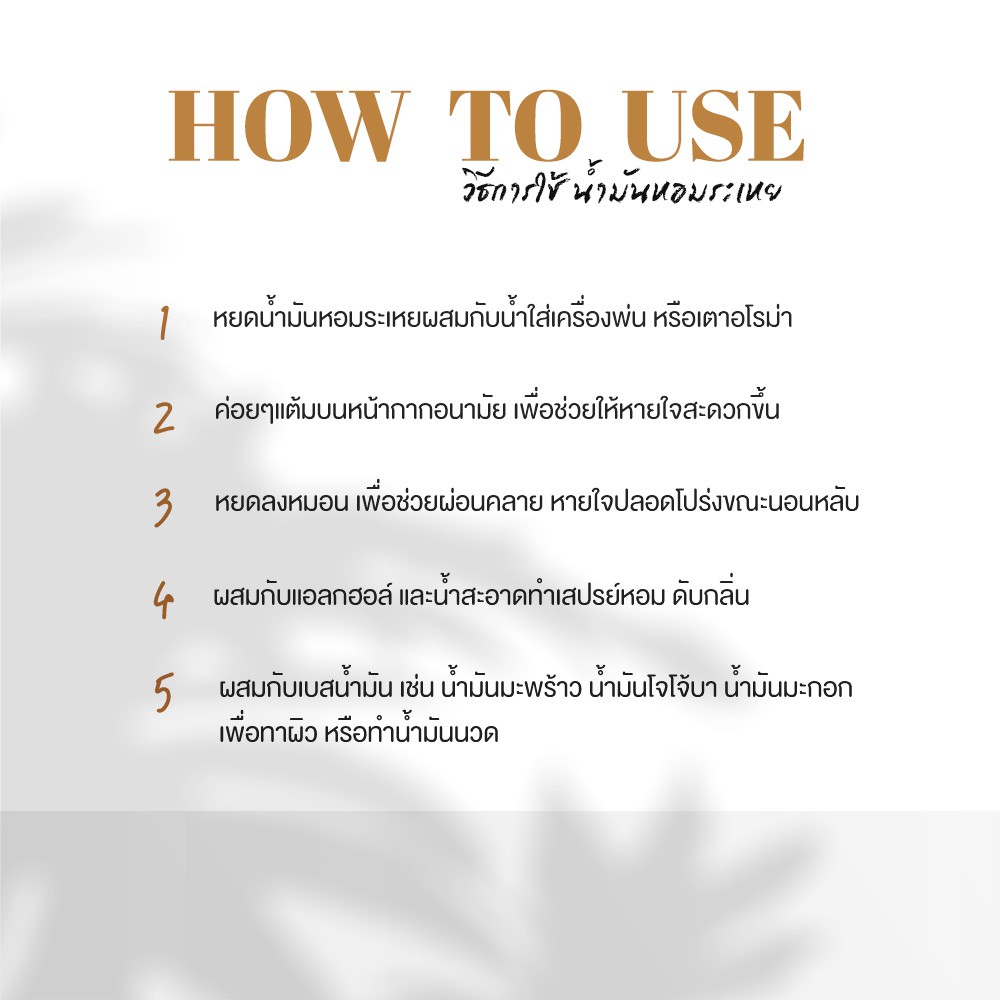 ฿96Current price is: ฿96. Original price was: ฿190.ร้าน: THYme. Thailand น้ำมันหอมระเหย