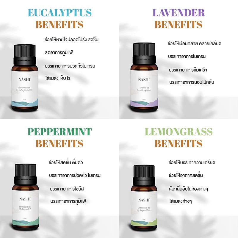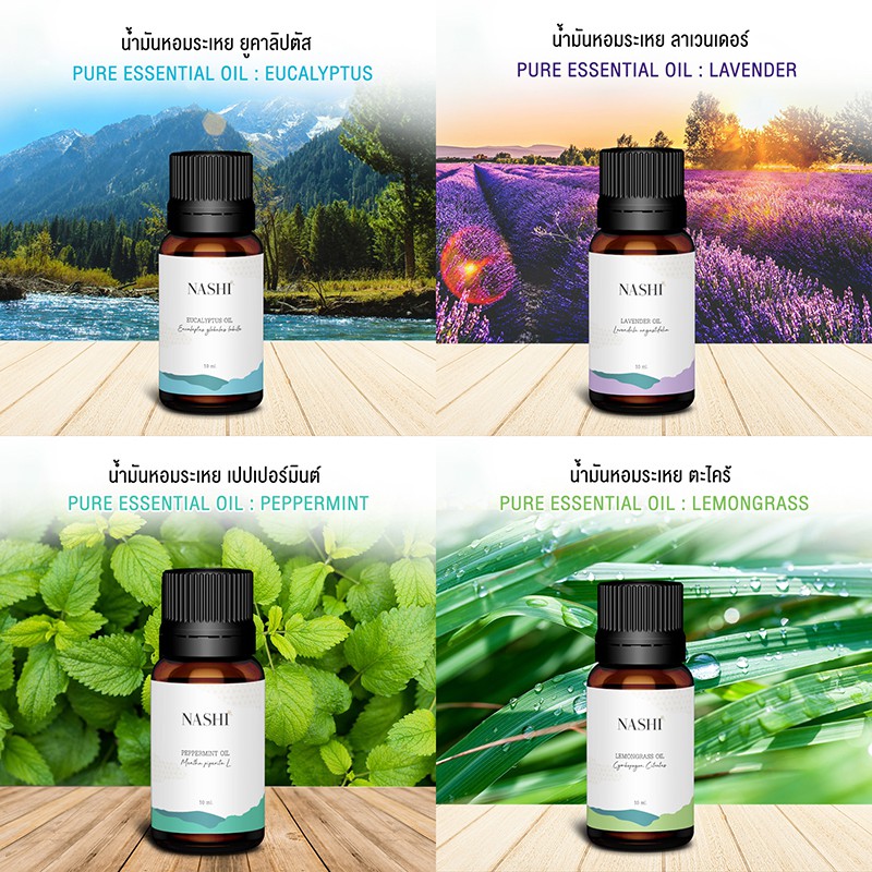 น้ำมันหอมระเหย 10 ml/30 ml ยูคาลิปตัส เปปเปอร์มินต์ ลาเวนเดอร์ ตะไคร้ NASHI ESSENTIAL OIL น้ำหอมเครื่องพ่นไอน้ำ