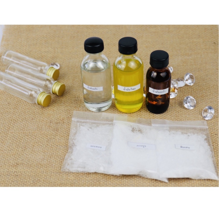 ชุดทำพิมเสนน้ำกลิ่นอโรม่า พิมเสนน้ำกลิ่นธรรมชาติ 290 CC(ทำได้60 ขวด)ฟรีขวด 8cc 2ใบ