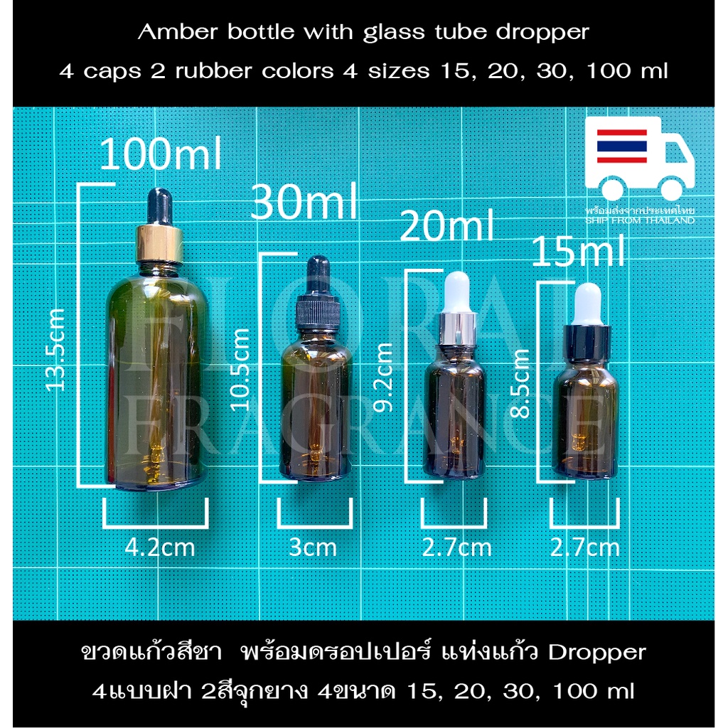ขวดแก้วสีชา ดรอปเปอร์ Dropper น้ำมันหอมระเหย น้ำหอม แบ่ง ขวดเปล่า อโรม่า พร้อมหลอดหยด4ขนาด 15,20,30,100ml