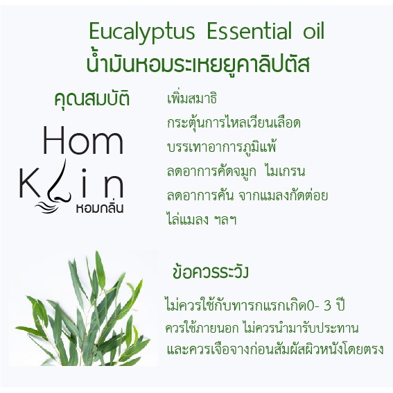 น้ำมันหอมระเหยยูคาลิปตัส แบรนด์ Homklin Eucalyptus pure essential oils สินค้าคุณภาพ สกัดจากธรรมชาติ