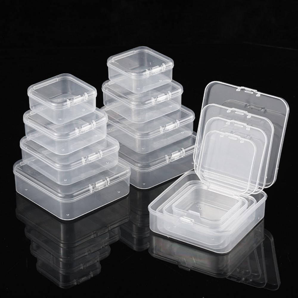 QINYUZ9 ภาชนะเก็บต่างหู,กันฝุ่นหลายขนาดกล่องเก็บสี่เหลี่ยม,กล่องเก็บแหวน PP โปร่งใส