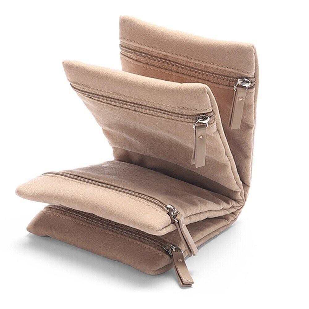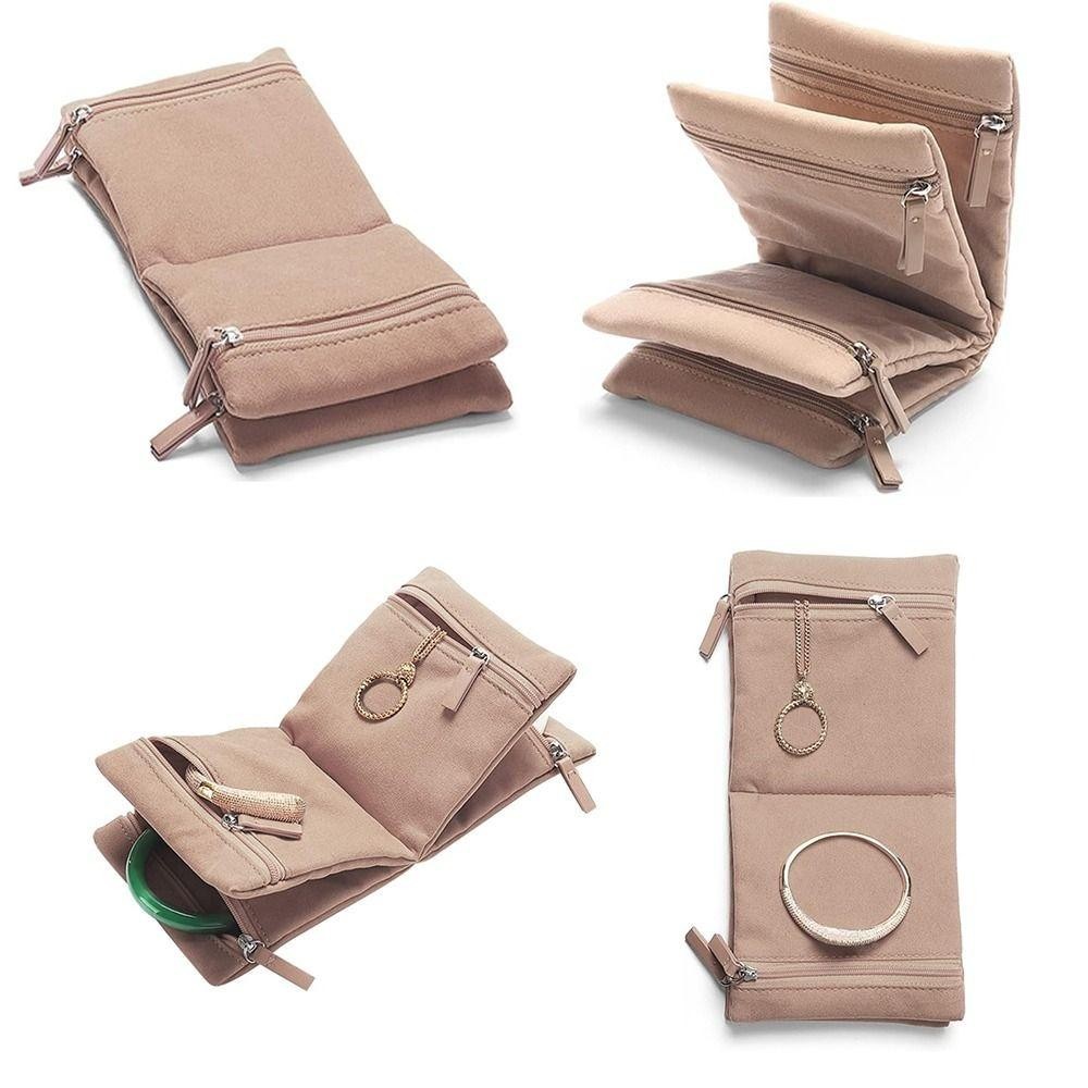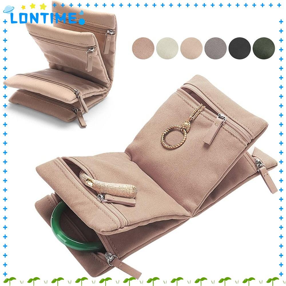 LONTIME กระเป๋าเก็บของ, กระเป๋าเก็บเครื่องประดับกํามะหยี่ซิป, แบบพกพาพับได้หลายช่องกระเป๋าคลัทช์สร้อยคอ