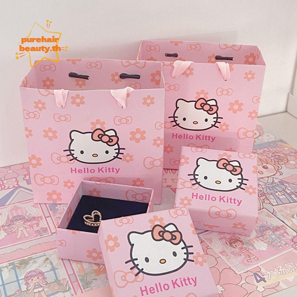 PUREHAIRBEAUTY Kt ชุดกล่องของขวัญแมว, การ์ตูน Sanrio Hello Kitty กล่องเก็บเครื่องประดับ, กล่องบรรจุภัณฑ์แหวนสร้อยคอแบบพกพาระดับไฮเอนด์หญิง