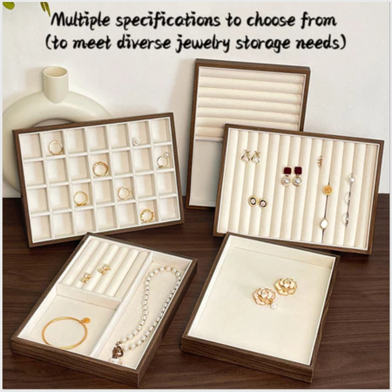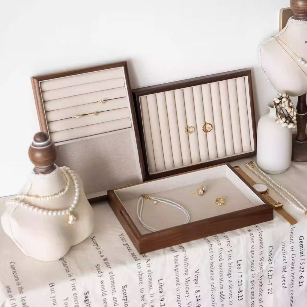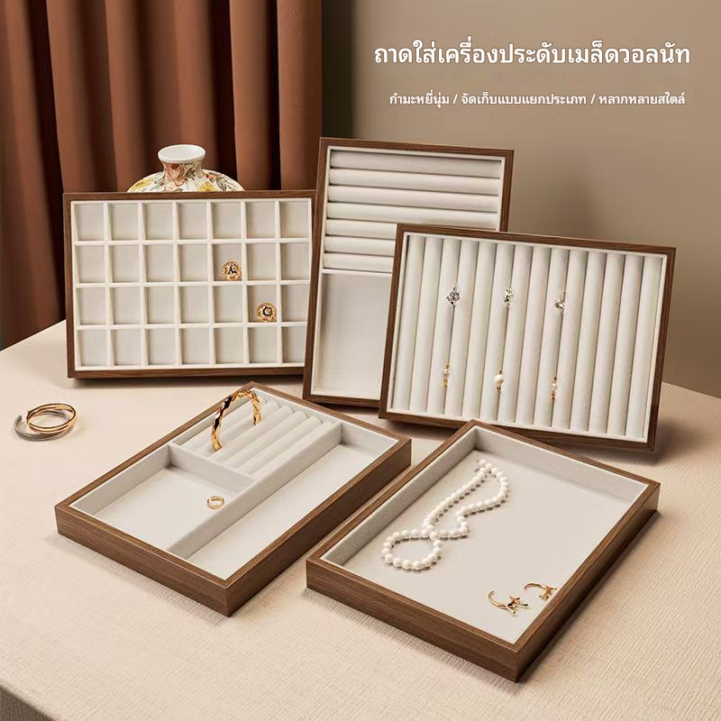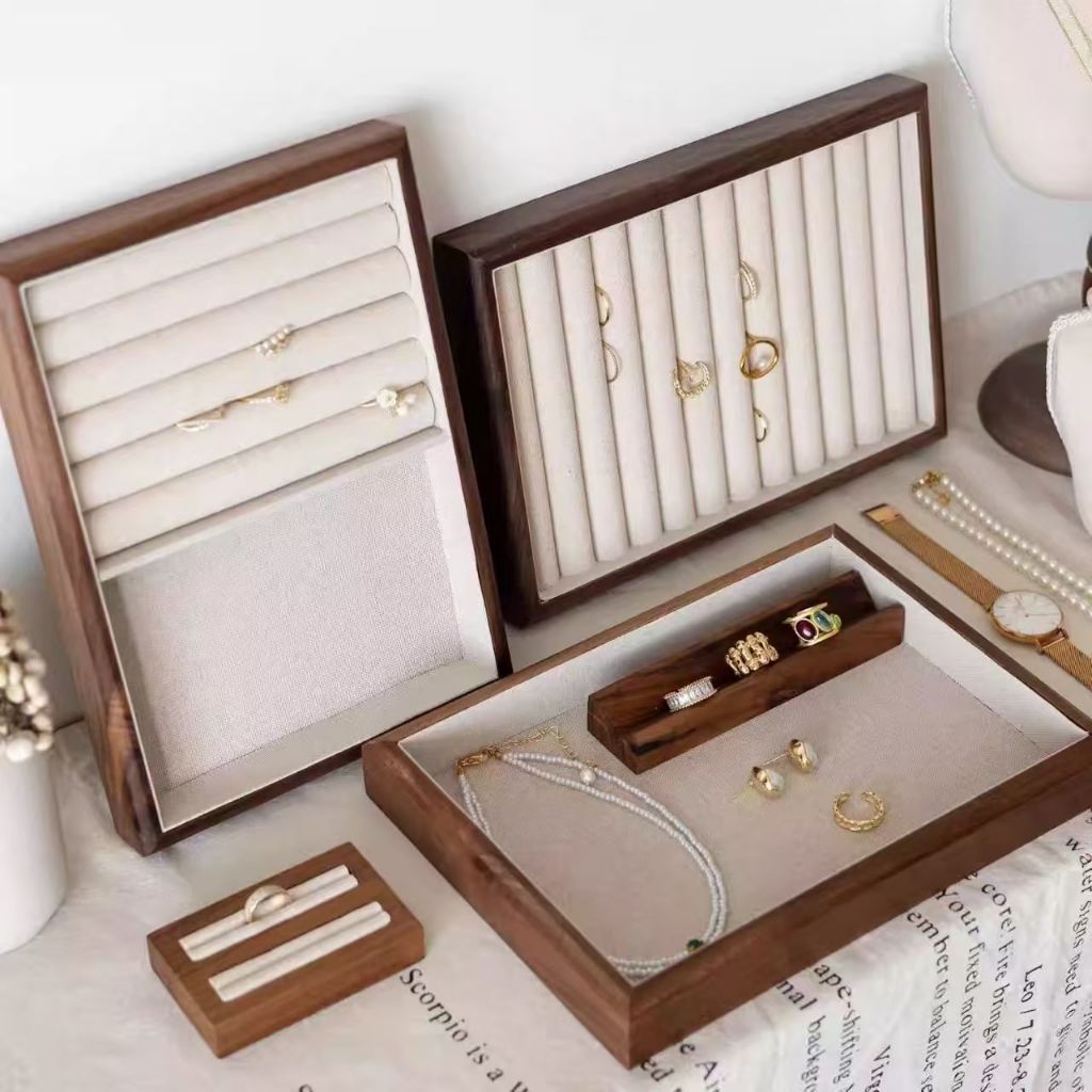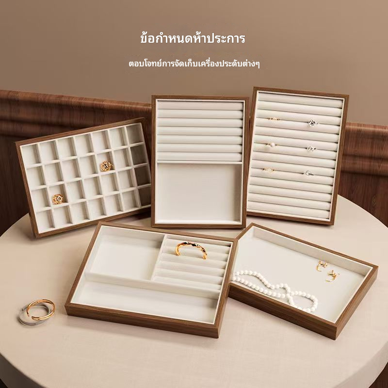 Jewellery กล่องวอลนัทลายไม้ Jewellery ถาด Retro จอแสดงผล Jewellery ผู้ถือสร้อยข้อมือสร้อยคอแหวนกล่องเก็บตู้โชว์ลิ้นชัก