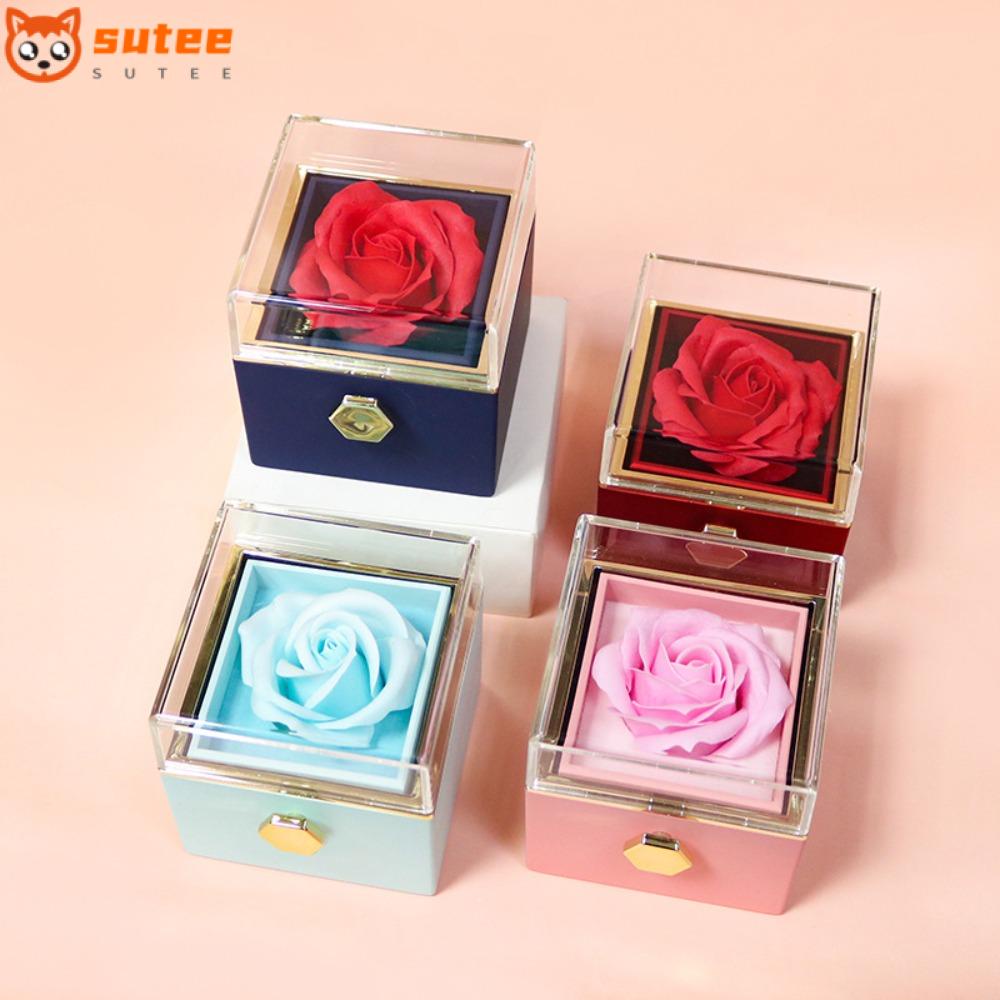 Sutee กล่องอะคริลิคใส รูปดอกกุหลาบ หมุนได้ พร้อมถุงของขวัญ สําหรับใส่เครื่องประดับ สร้อยคอ วันวาเลนไทน์