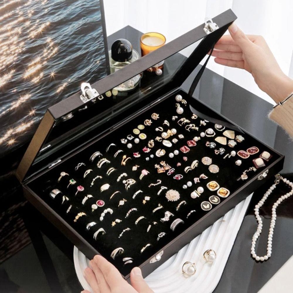 Solarbyte ถาดเก็บเครื่องประดับ, PU หนังไม้กํามะหยี่กล่องเครื่องประดับ,ลิ้นชัก Organizer แหวน Errings สร้อยคอสร้อยข้อมือเครื่องประดับกรณีแสดงของขวัญ