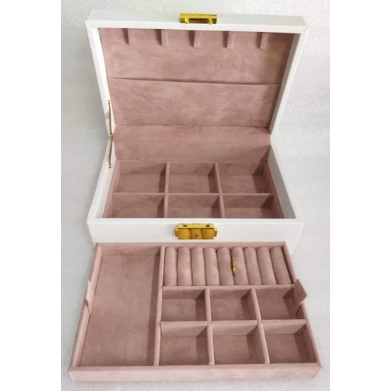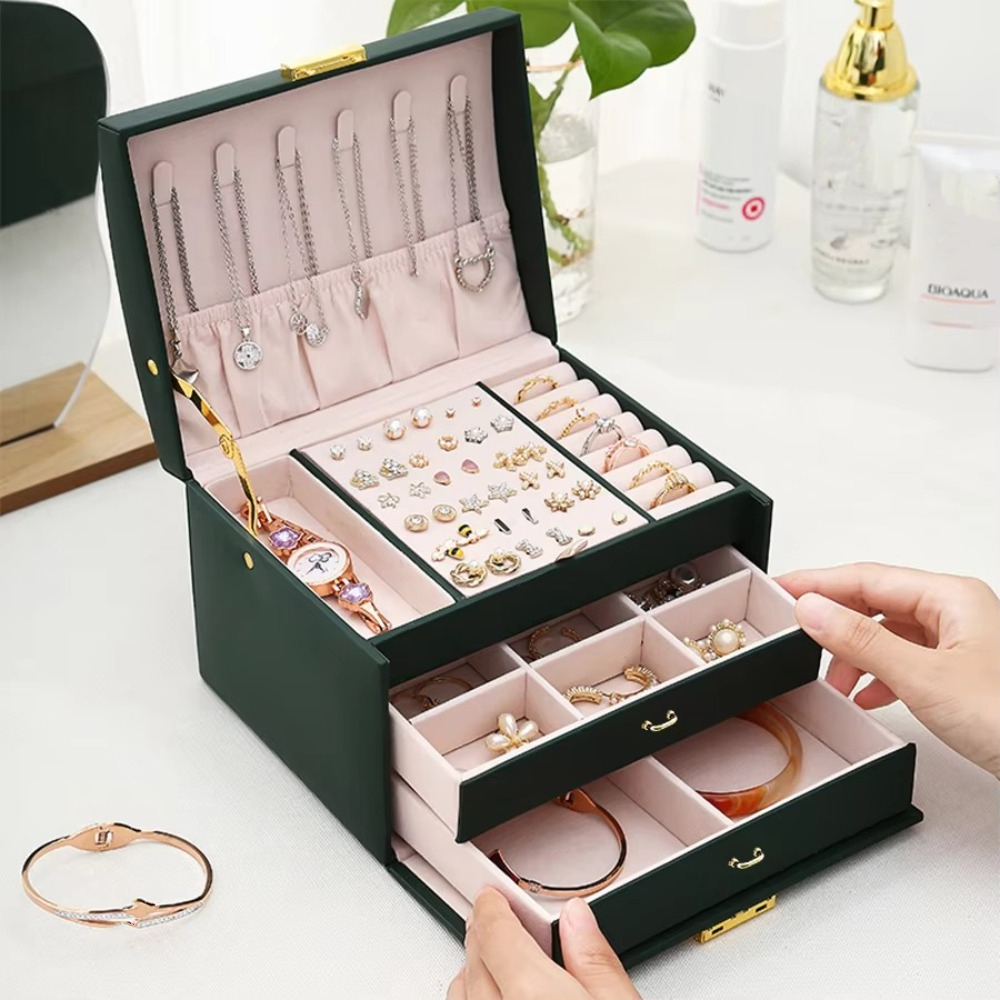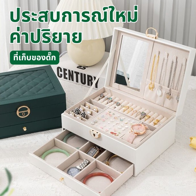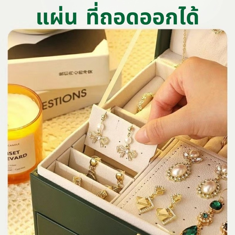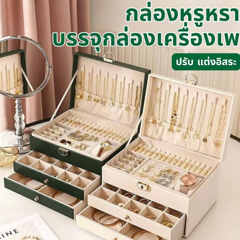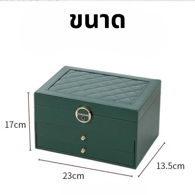 กล่องเก็บเครื่องประดับหนัง PU 3 ชั้นพร้อมกุญแจล็อคกล่องเก็บต่างหูกล่องเครื่องประดับความจุสูง