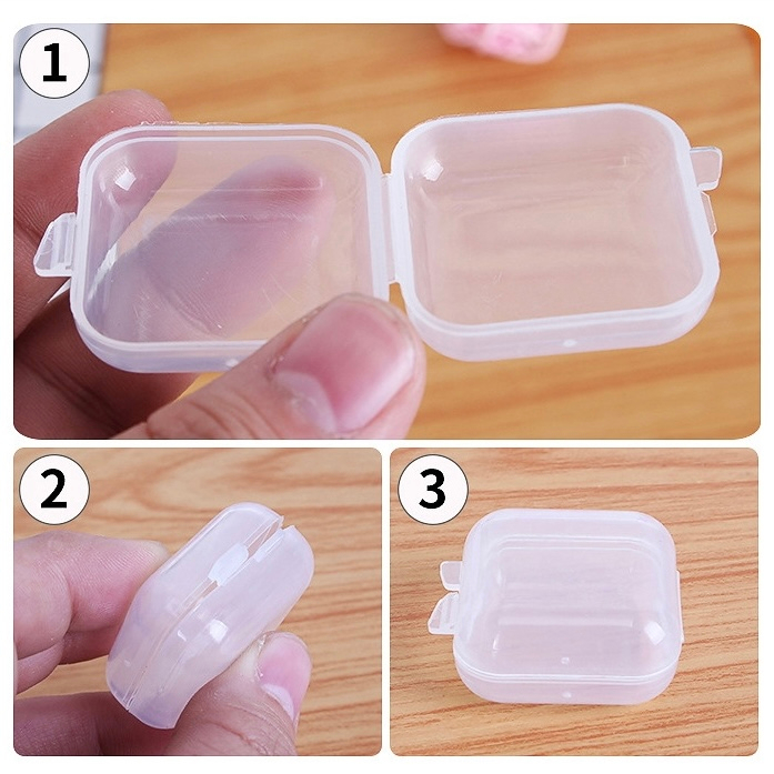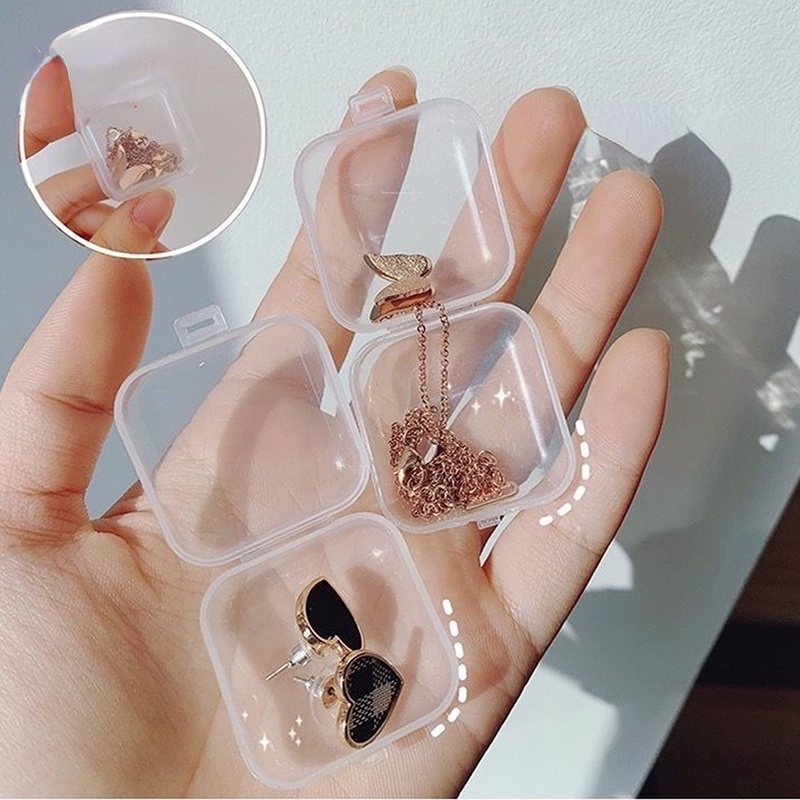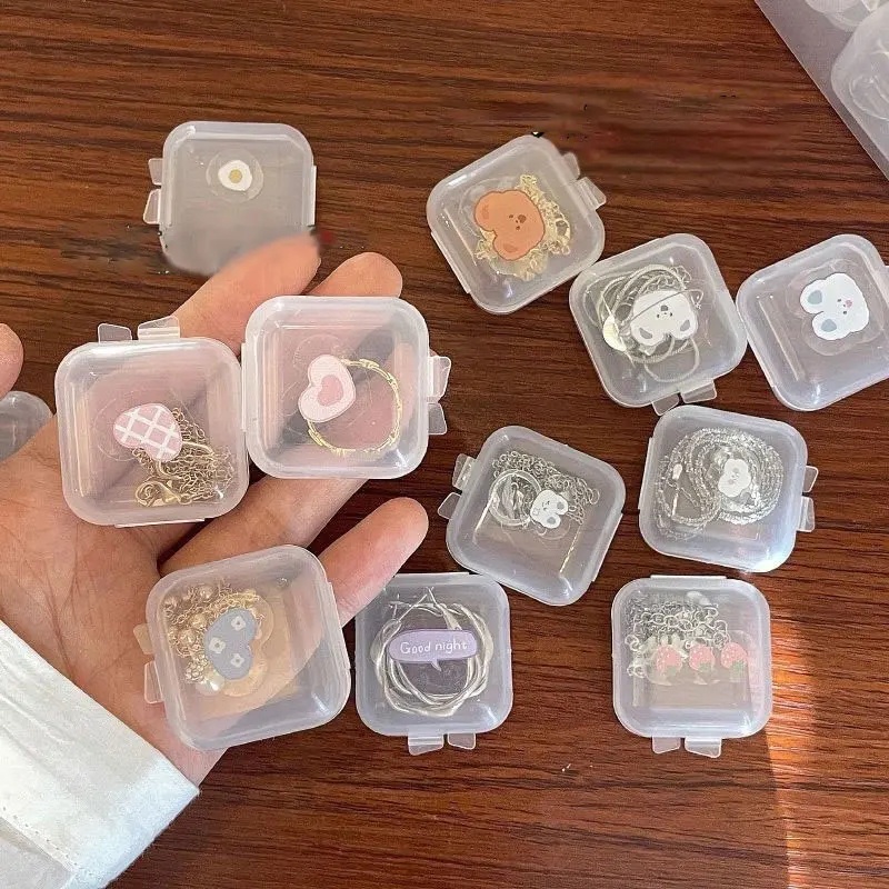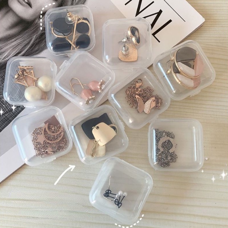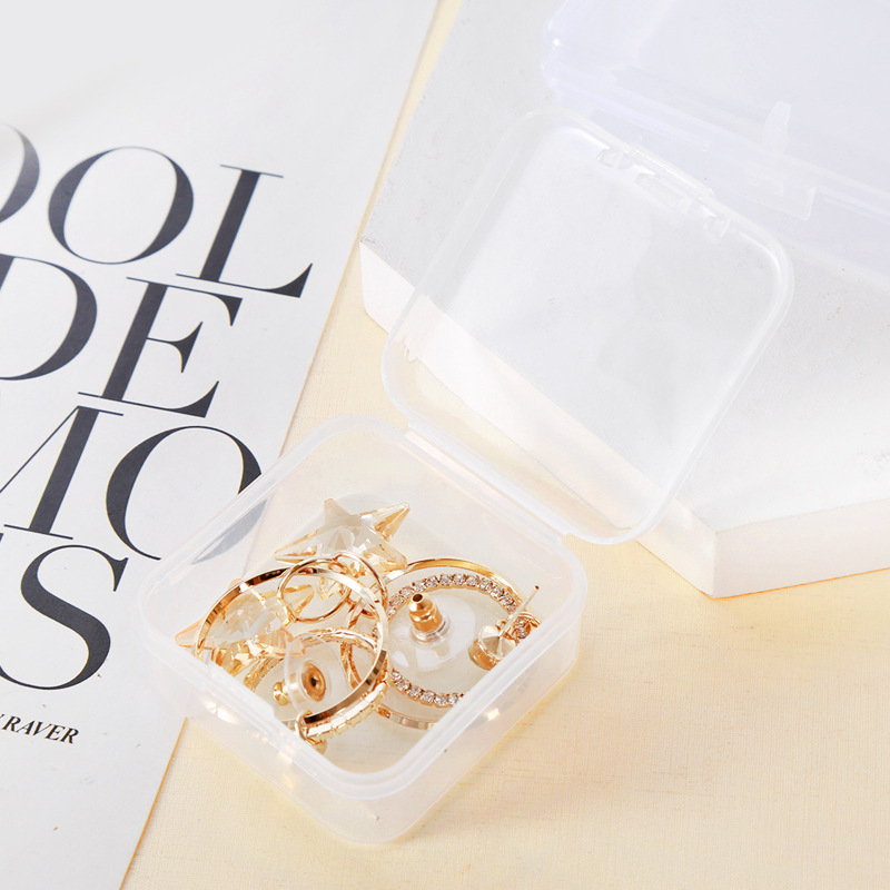 กล่องเก็บของฝาพับใสทรงสี่เหลี่ยมขนาดเล็ก-เครื่องประดับที่เก็บของกันฝุ่นบรรจุกล่องเรียงลําดับ