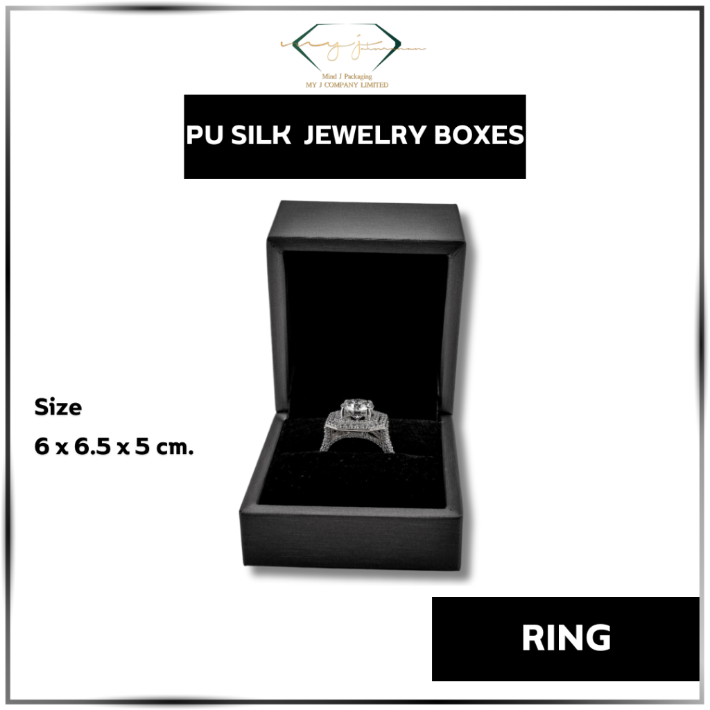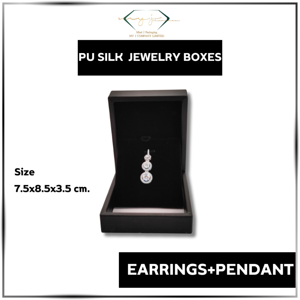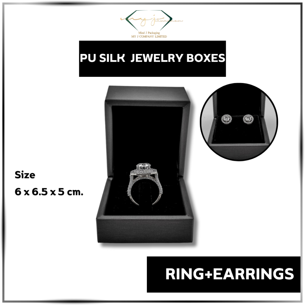 กล่องเครื่องประดับครบเซตสีดำด้านในสีดำ แหวน จี้+ต่างหู กำไล ข้อมือ สร้อยคอ หนังลายผ้าไหมด้านในกำมะหยี่ดำ
