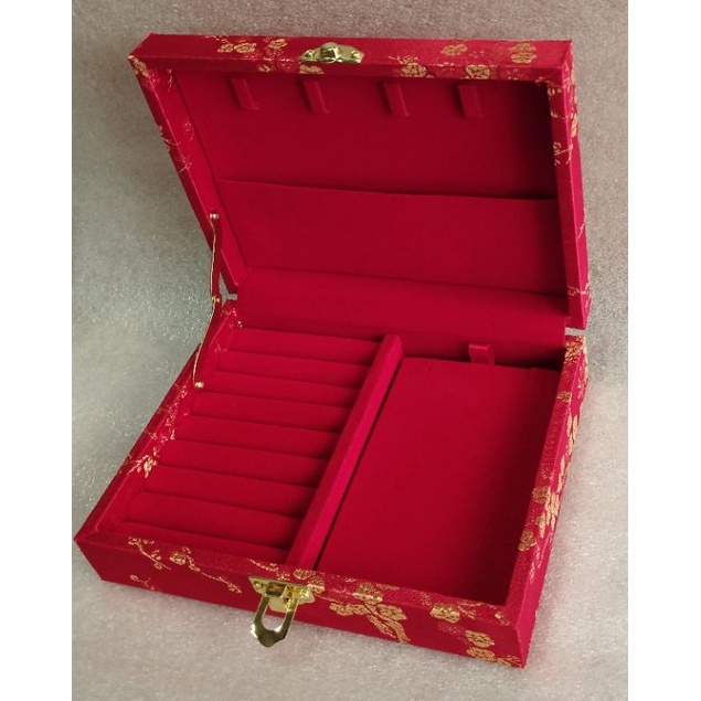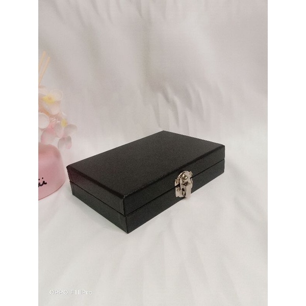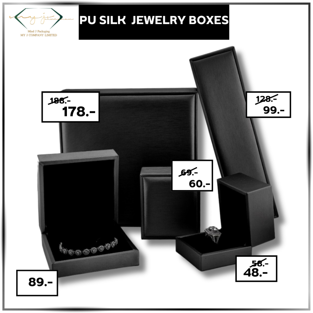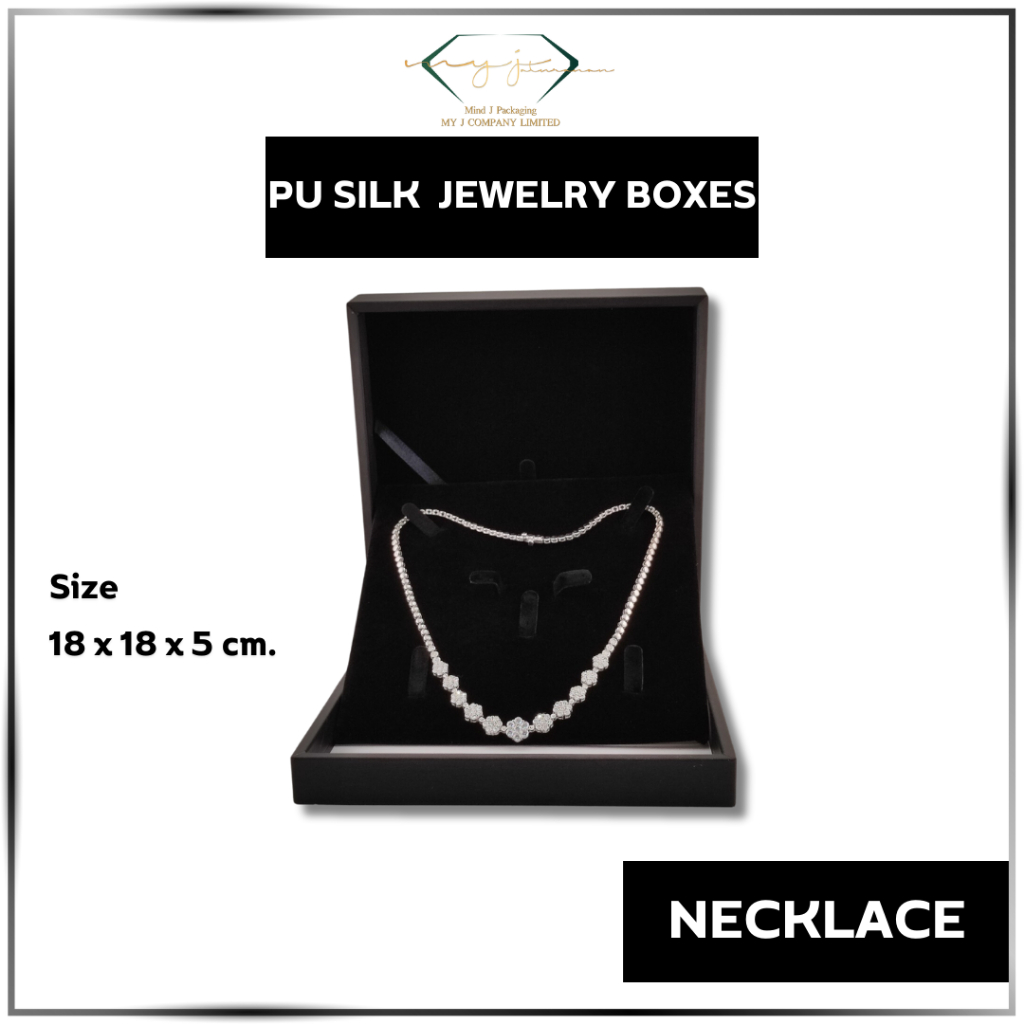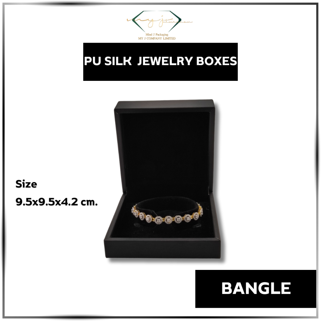 กล่องเครื่องประดับครบเซตสีดำด้านในสีดำ แหวน จี้+ต่างหู กำไล ข้อมือ สร้อยคอ หนังลายผ้าไหมด้านในกำมะหยี่ดำ