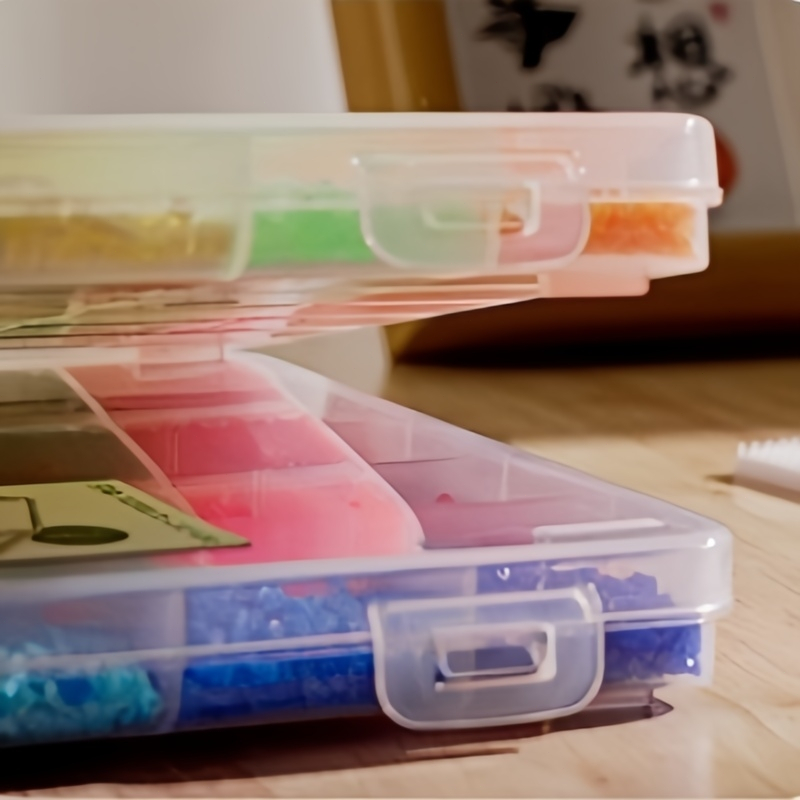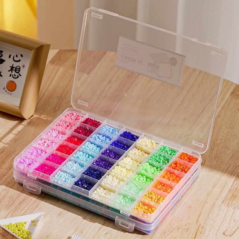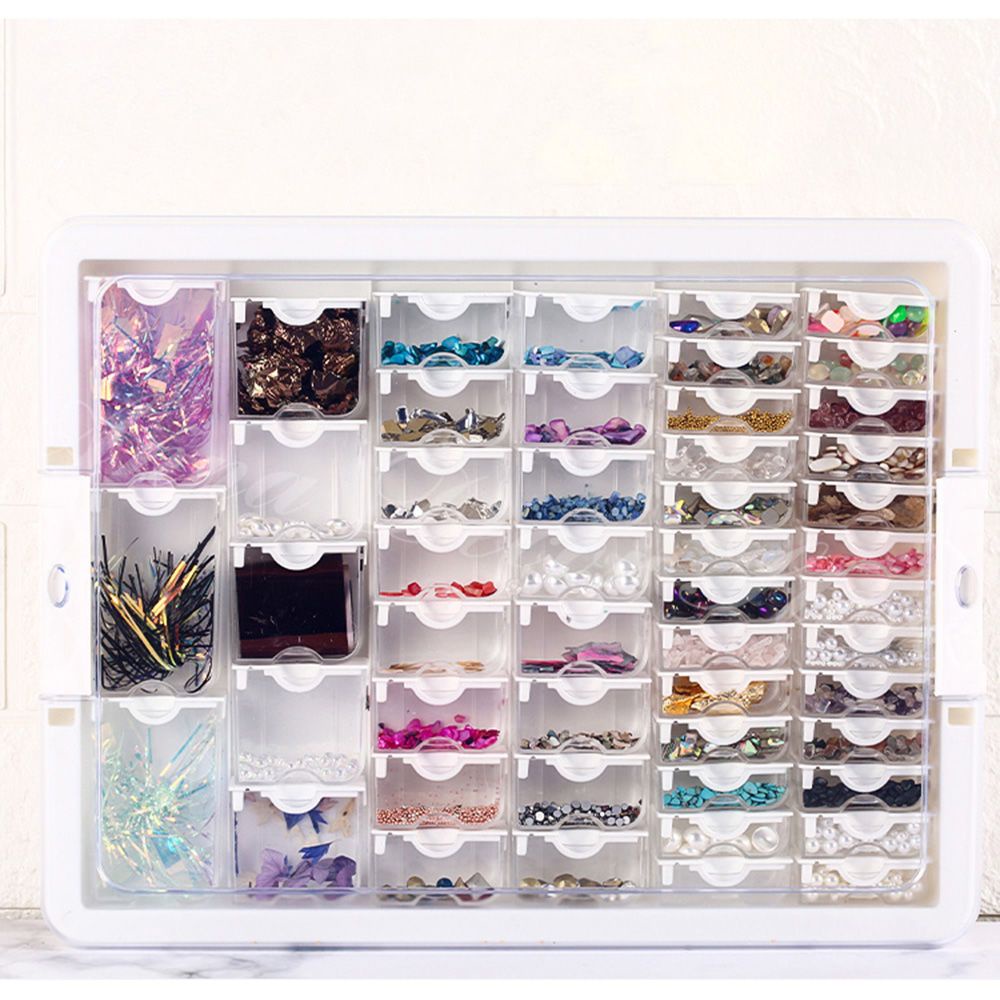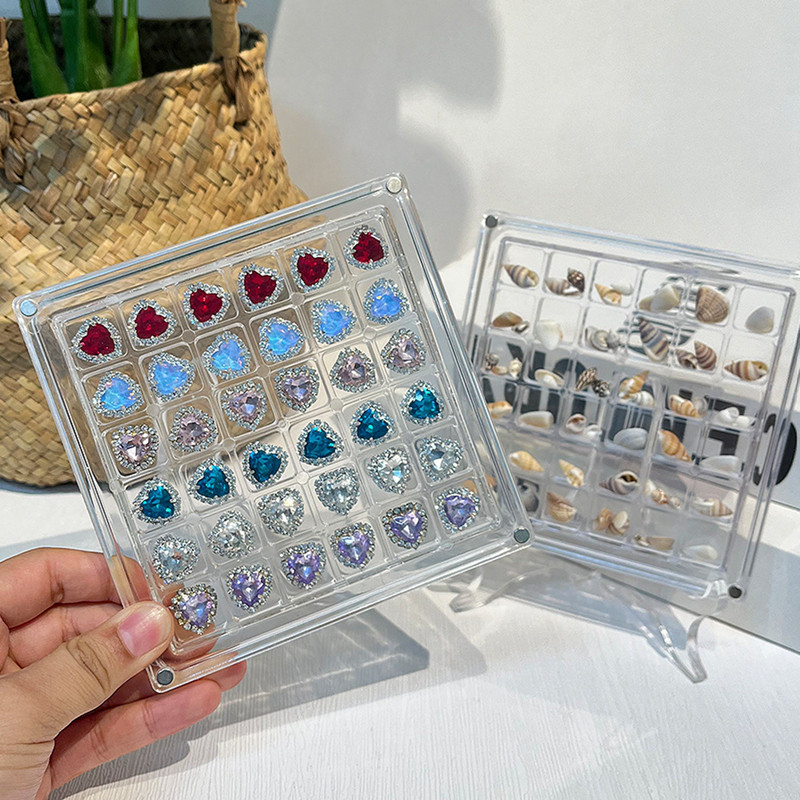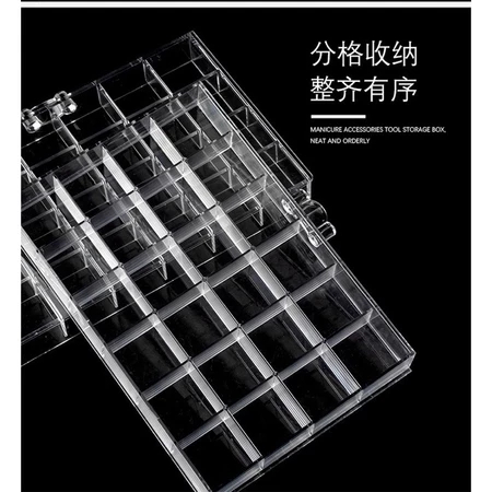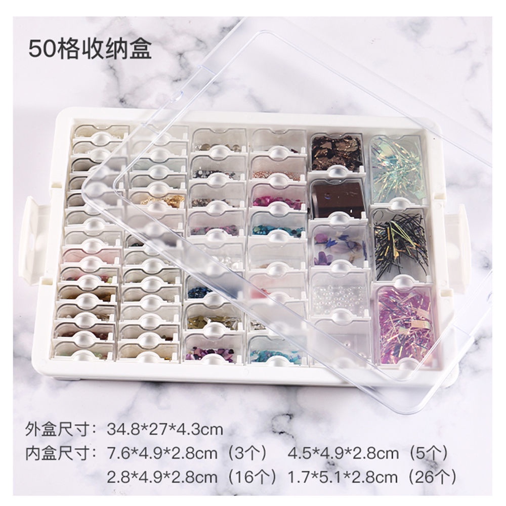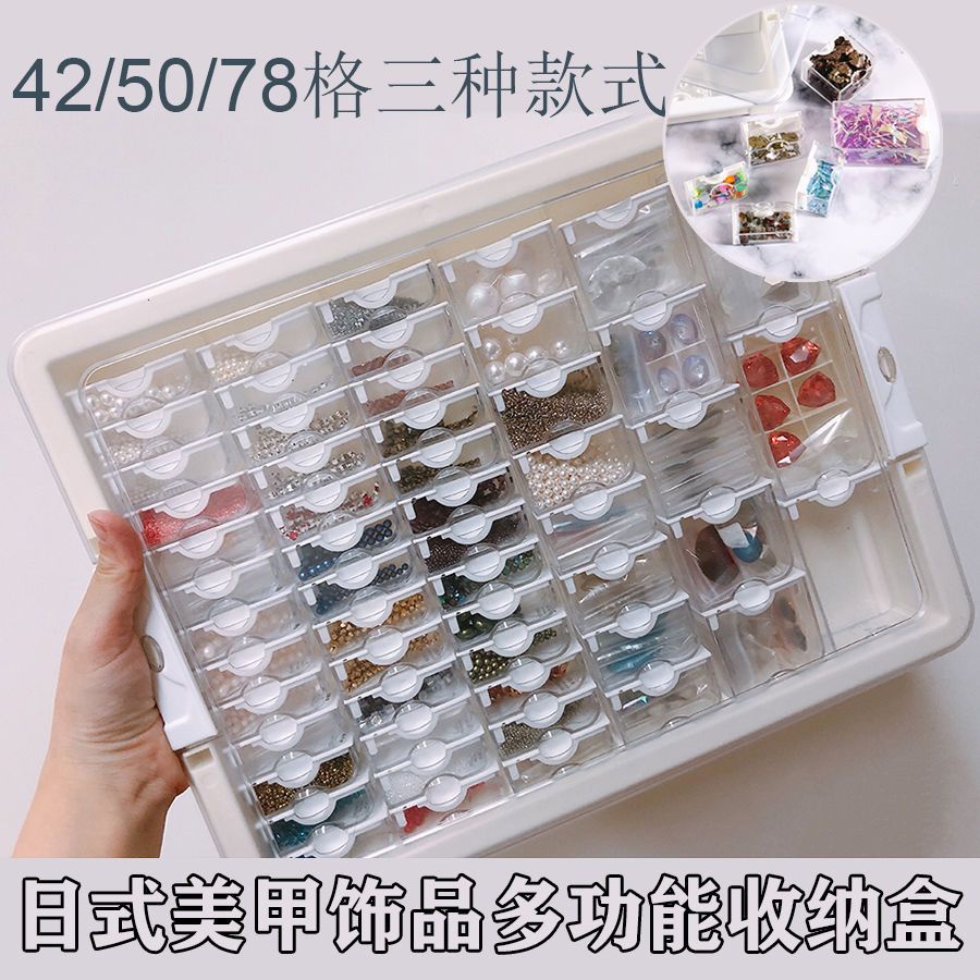 กล่องเก็บลูกปัดเครื่องแต่งเล็บสไตล์ญี่ปุ่นกล่องเก็บมัลติฟังก์ชั่เครื่องประดับเพชรหลายตารางโปร่งใสเล็บที่ถอดออกได้ชิ้นแบบพกพาขนาดใหญ่-ความจุกล่อ