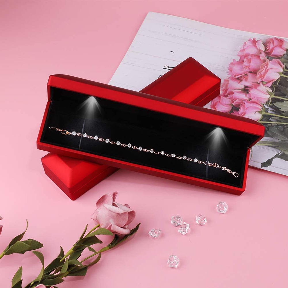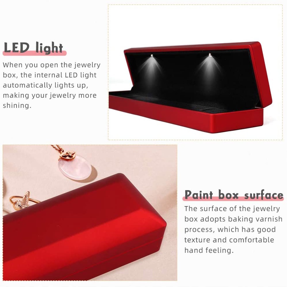 กล่องเก็บเครื่องประดับ สร้อยคอ สร้อยข้อมือ มีไฟ LED สําหรับวันครบรอบแต่งงาน หมั้น