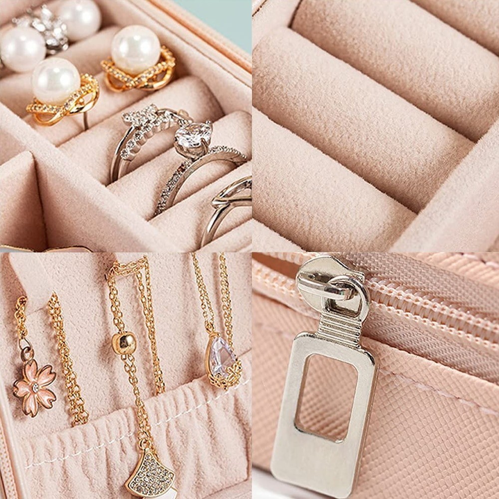 กล่องเก็บเครื่องประดับหลายชั้น: เคสพกพาสองชั้นสําหรับต่างหู, แหวน, สร้อยคอ – Spacious & แบ่งเครื่องประดับหนัง