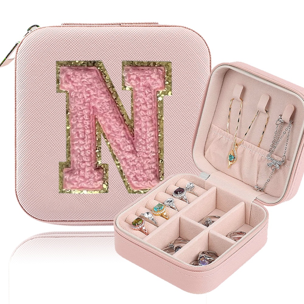 กล่องเก็บอัญมณีกรณีเดินทางแบบพกพาจัดระเบียบกันน้ํากรณีสําหรับต่างหูแหวนสร้อยคอหนังปูหลายกริด