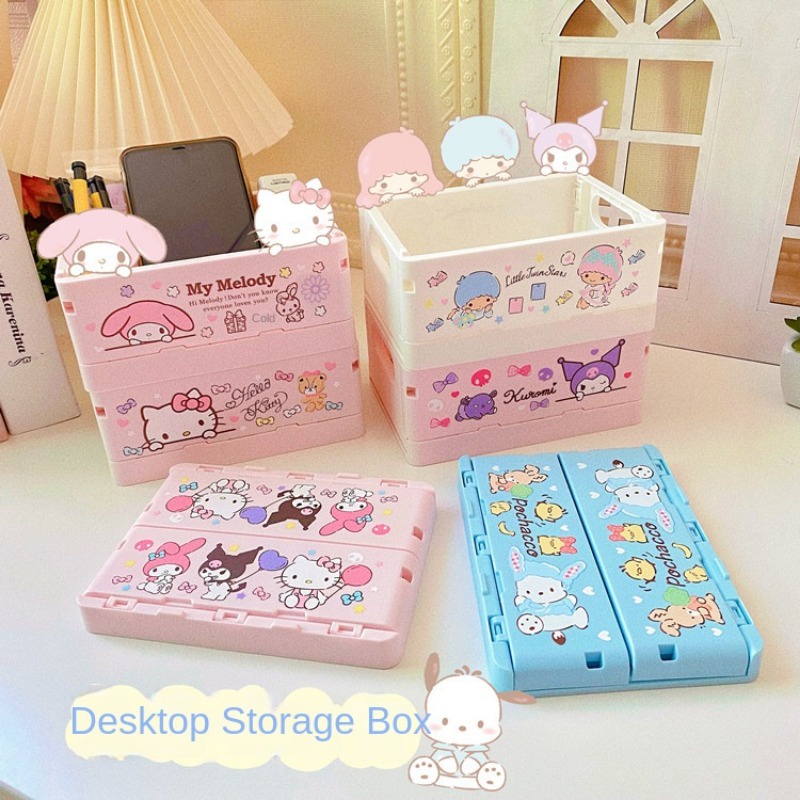 ใหม่ยอดนิยม น่ารัก กล่องเก็บของพับการ์ตูนน่ารักแบบพกพามินิสก์ท็อปกล่องพลาสติกจิปาถะกล่องกระเป๋าเก็บเครื่องสําอาง
