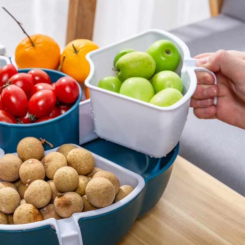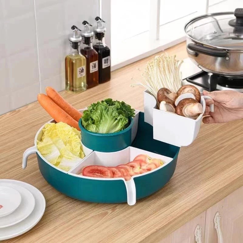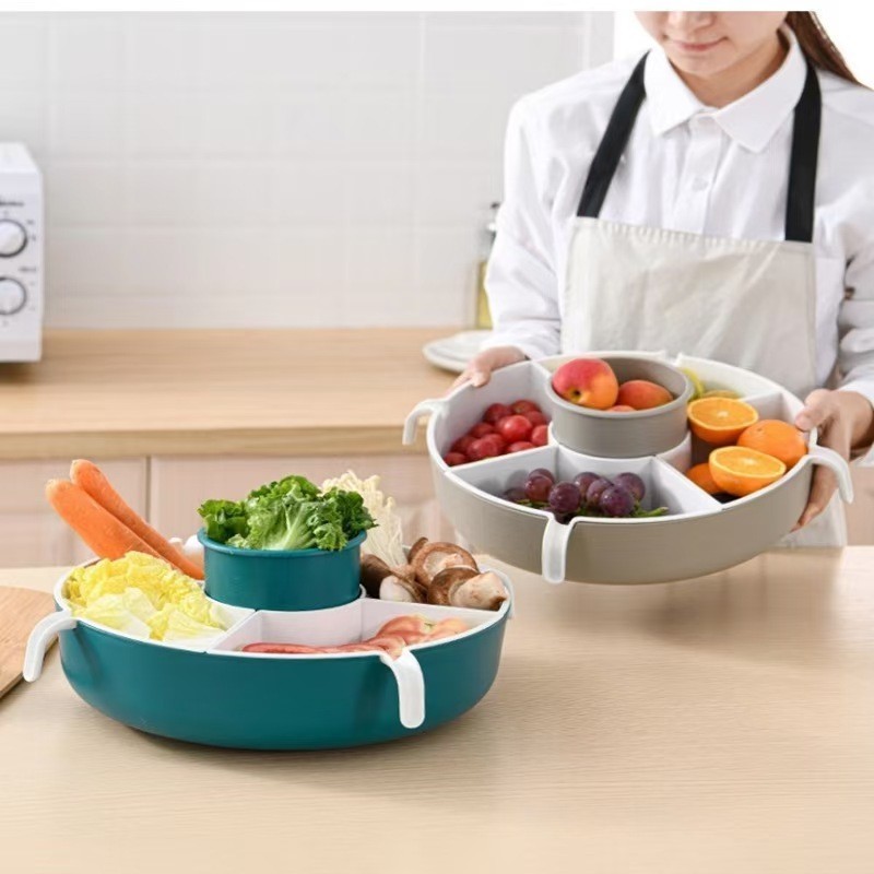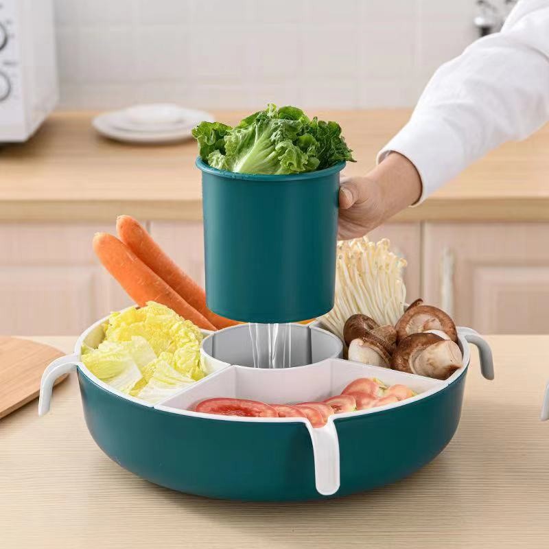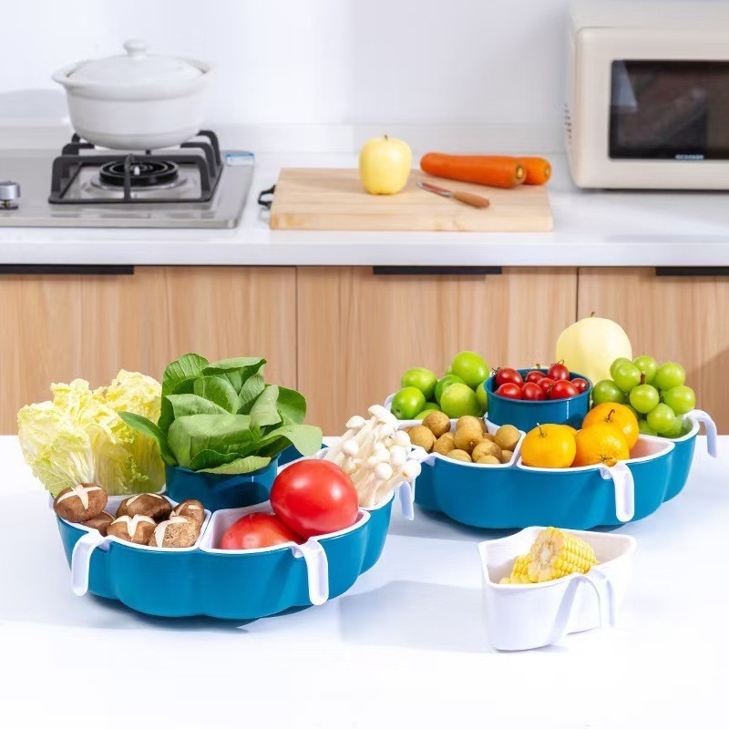 ใหญ่พิเศษกะละมังล้างผัก ตะกร้าใส่ผัก แยกช่องใส่ผักและอาหาร5ช่องชุดตระกร้ากรอง กลมมีเข้าคู่กับกะละมัง กะละมังใส่ผักแฟชั่น