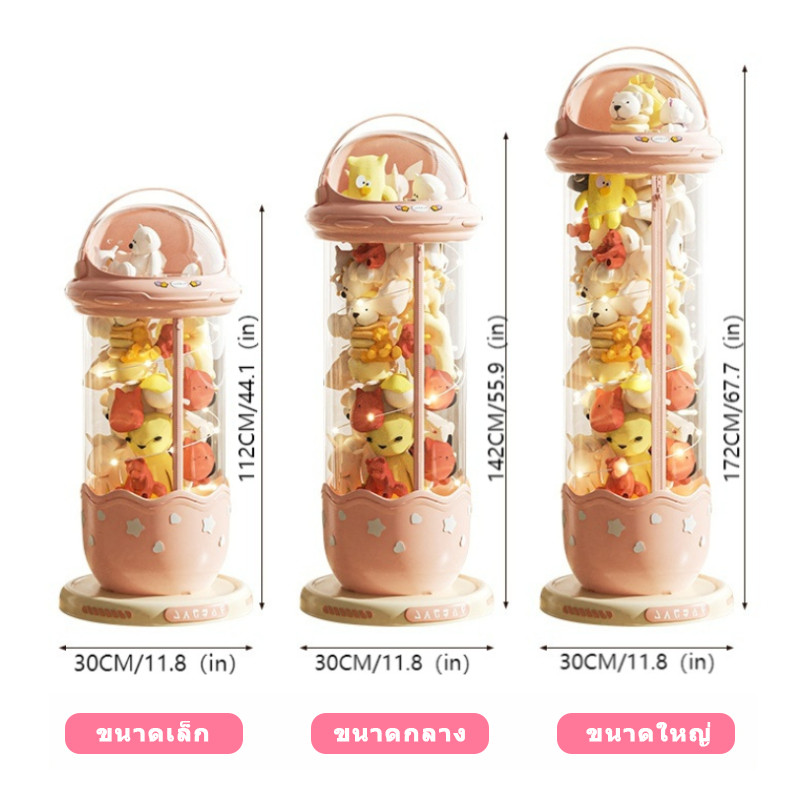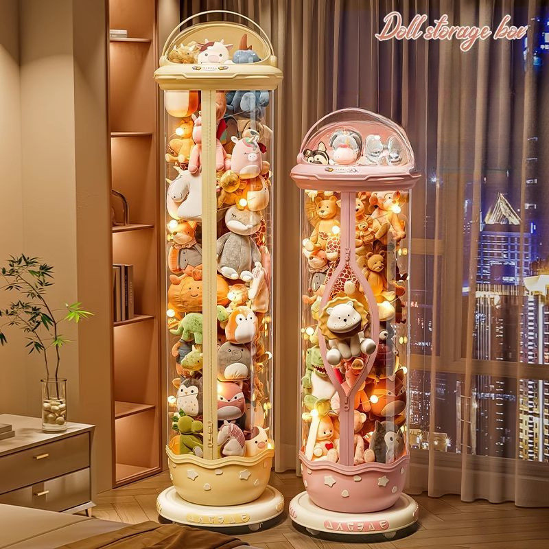 ใหม่ ถังโชว์ตุ๊กตาแบบใส พร้อมล้อเลื่อน หมุนได้ ดีไซน์เปิดปิดด้วยซิป ตกแต่งห้อง