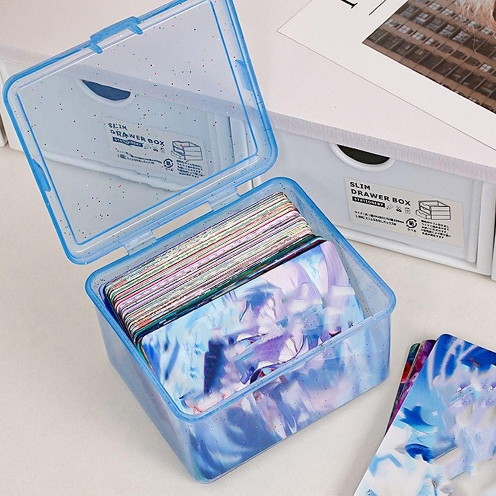 โน้ม กล่องสะสมกล่องเก็บภาชนะเครื่องประดับรูปสี่เหลี่ยมผืนผ้าผู้ถือบัตรขนาดเล็กอเนกประสงค์ฝุ่นพลาสติกใสสก์ท็อปออแกไนเซอร์สําหรับการจัดเก็บเคร