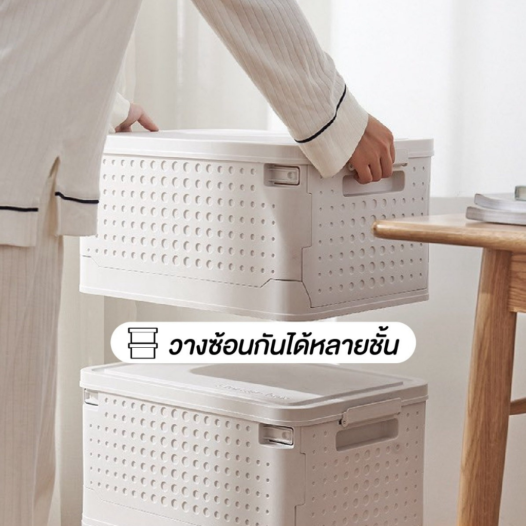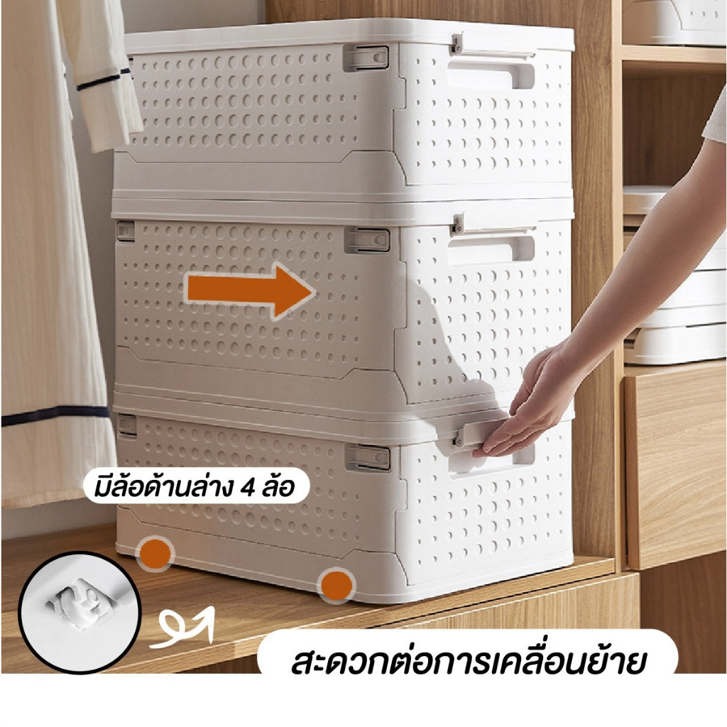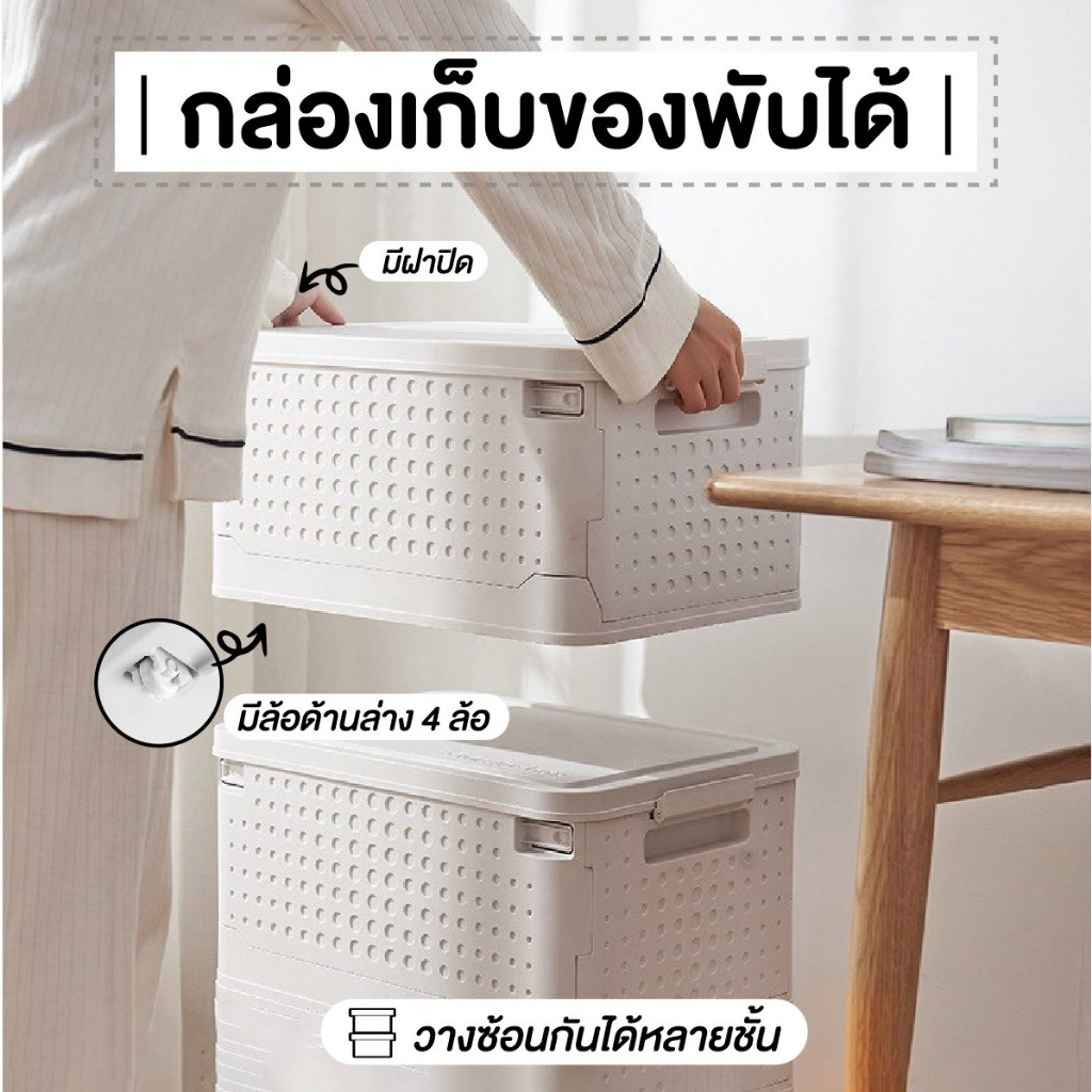 ✅ส่งจากไทย✅กล่องเก็บของอเนกประสงค์ กล่องเก็บของพับได้ ใบใหญ่ กล่องพลาสติก มีฝาปิด มีล้อ วางซ้อนกันได้