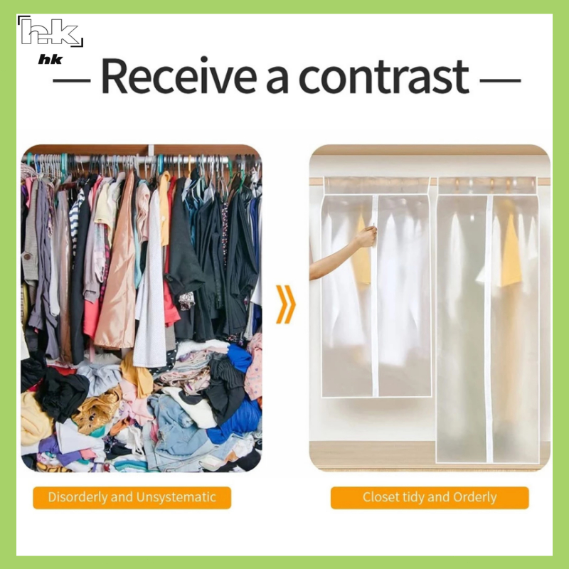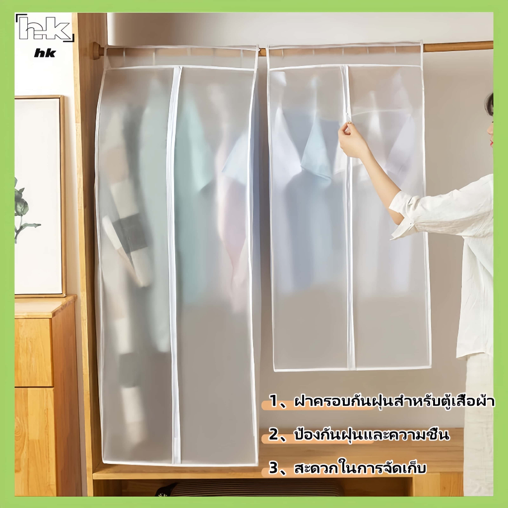 HK ฝาครอบกันฝุ่นสำหรับเสื้อผ้า ถุงกันฝุ่น ฝาครอบกันฝุ่น ที่คลุมเสื้อผ้า ถุงกันฝุ่นเสื้อ พลาสติกปกป้องผ้า มีหลากหลายขนาด ป้องกันฝุ่นและความชื้น ถุงใส่เสื้อ ถุงเสื้อผ้าคลุมกันฝุ่น