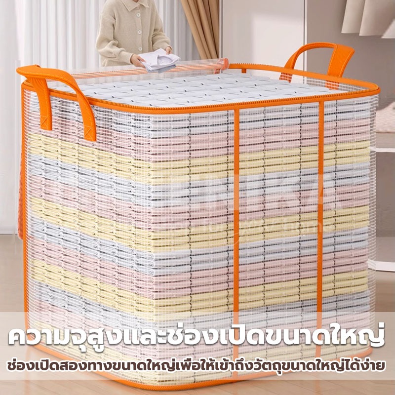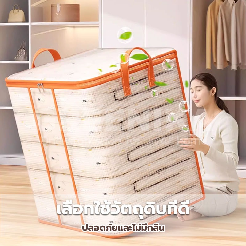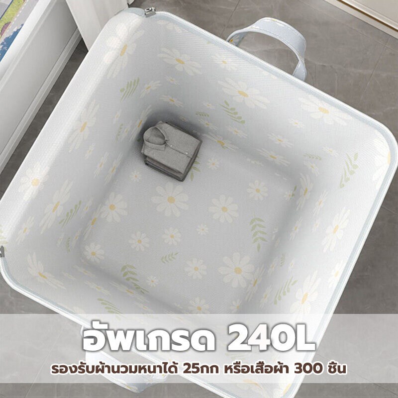 GREENIKA กระเป๋าเก็บของ 240L ถุงเก็บผ้านวม ถุงใส่ผ้า พับเก็บได้ มีซิป ท้าความจุขนาดใหญ่ ใช้เก็บผ้าห่ม ผ้านวมฯลฯ
