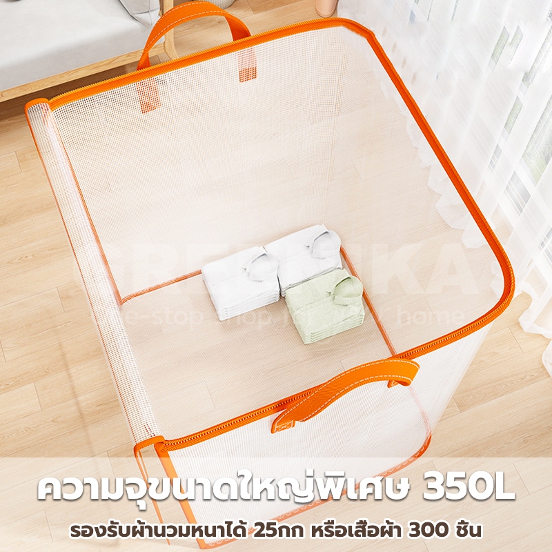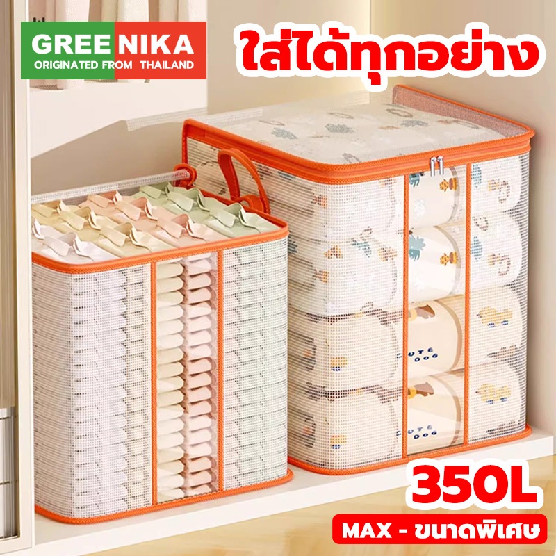 GREENIKA กระเป๋าเก็บผ้านวมใส 350L ขนาดใหญ่ เก็บท็อปเปอร์6ฟุต เครื่องนอน เสื้อผ้า กันน้ำกันฝุ่น