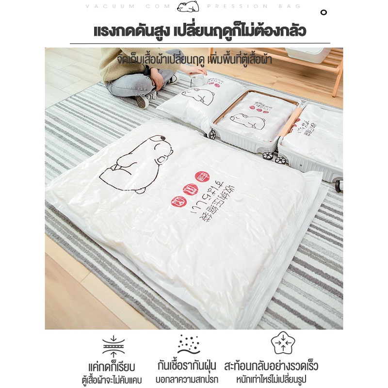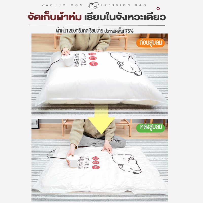 LUC ถุงหมีนอน 🐻💖 ถุงสูญญากาศ จัดเก็บผ้านวม มีจุกวาล์ว ถุงสูญญากาศประหยัดพื้นที่ (ราคา1ใบ)