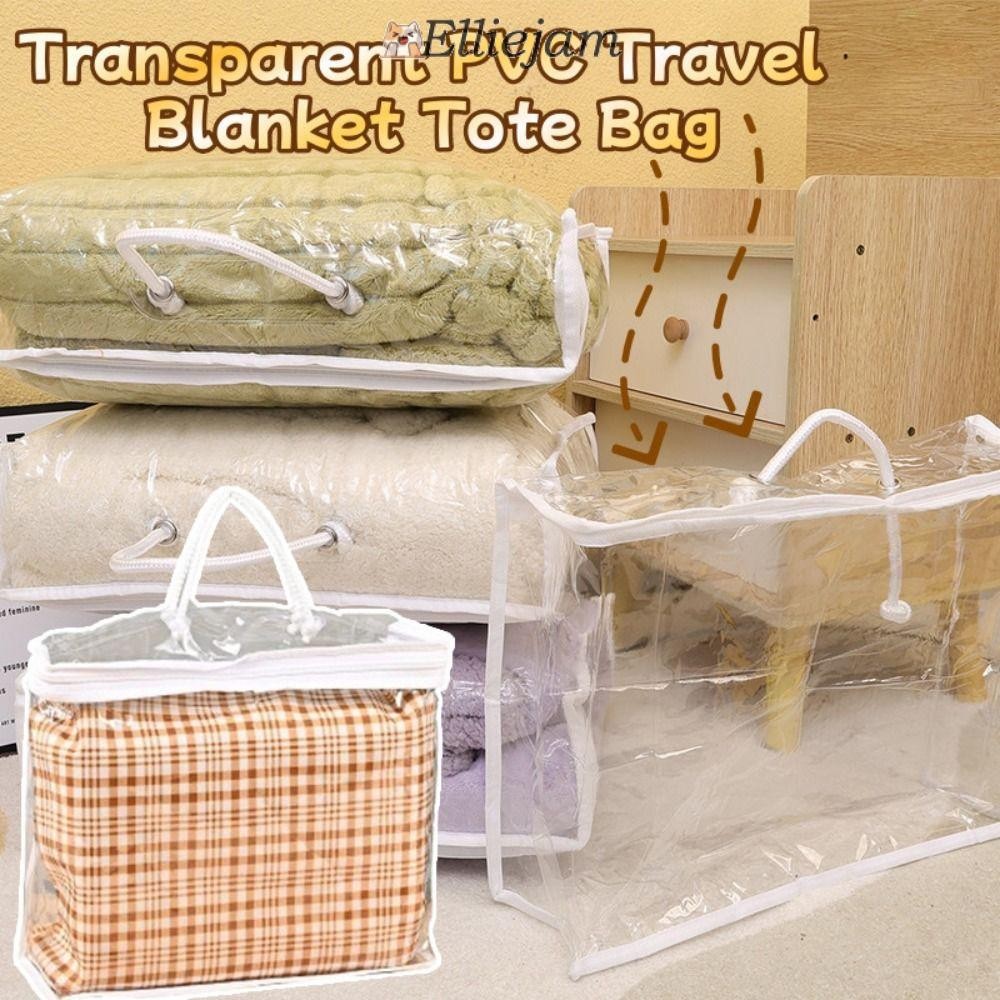 ELLIEJAM ถุงเก็บผ้านวม, PVC โปร่งใสผ้าปูที่นอน Organiser กระเป๋า, แบบพกพานํากลับมาใช้ใหม่กันฝุ่น Tote กระเป๋าสําหรับหมอนผ้าห่ม