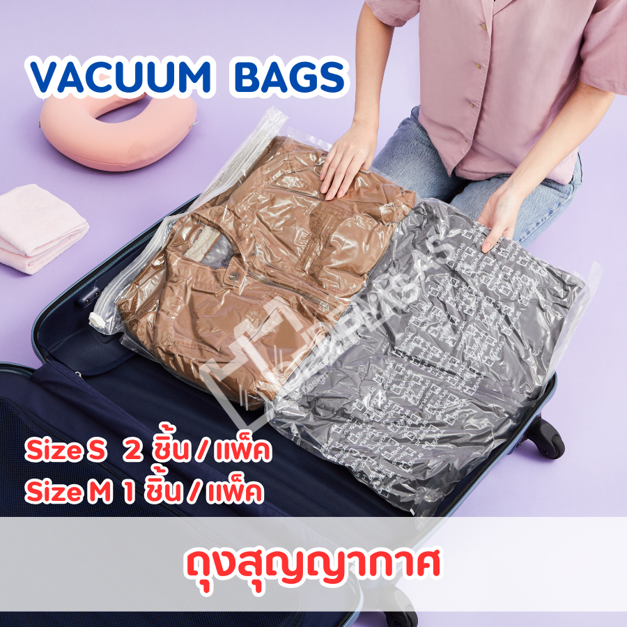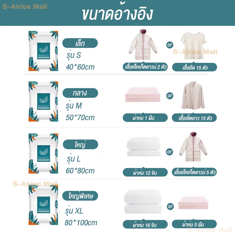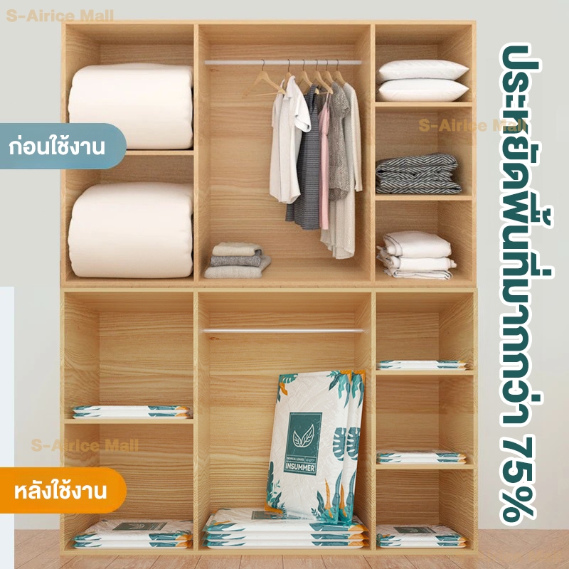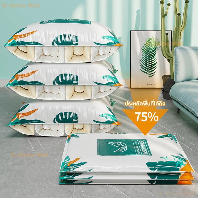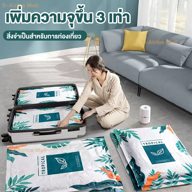 S-Airice ถุงสูญญากาศ ถุงเก็บเสื้อผ้า ผ้าห่ม มีแบบใส ประหยัดพื้นที่ 75% พร้อมปั๊มมือ/ปั๊มไฟฟ้า