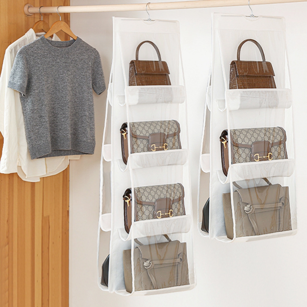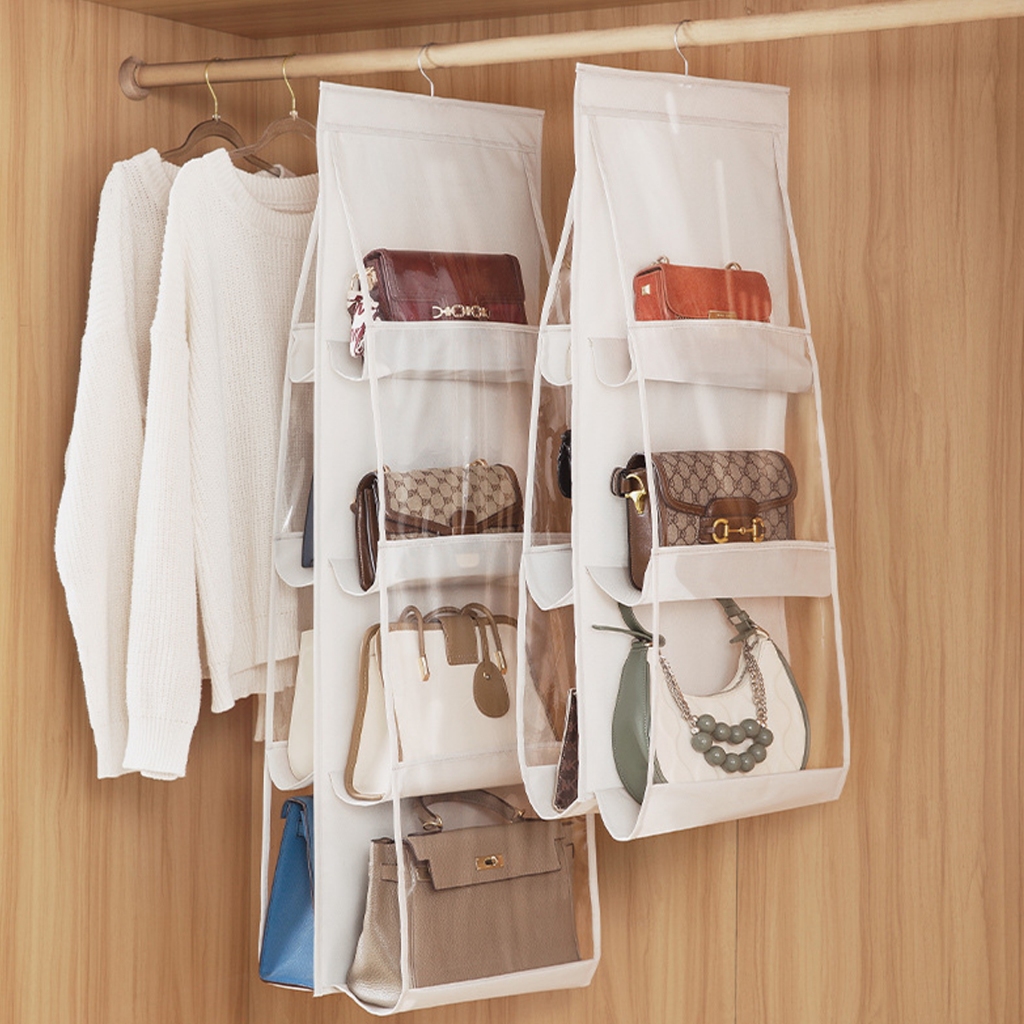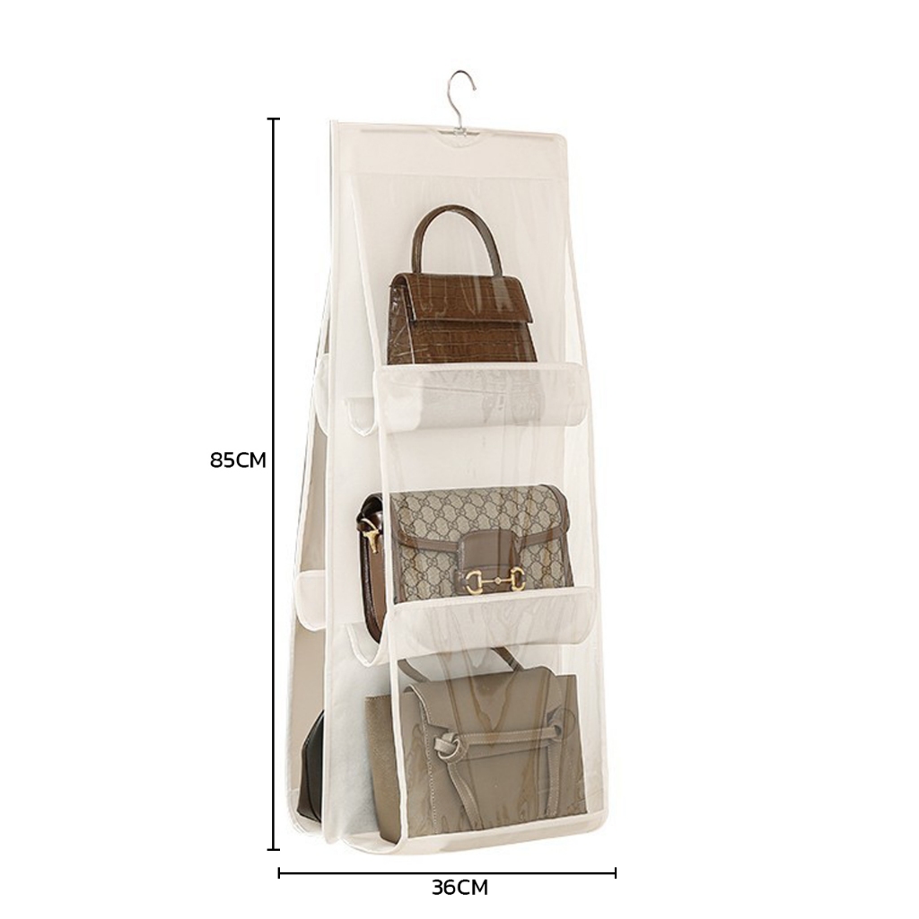 Hanaso ที่เก็บกระเป๋า ช่องแบ่ง6ช่อง ที่แขวนเก็บกระเป๋า กันฝุ่น สิ่งสกปรก ความชื้น ถุงแขวนกระเป๋า