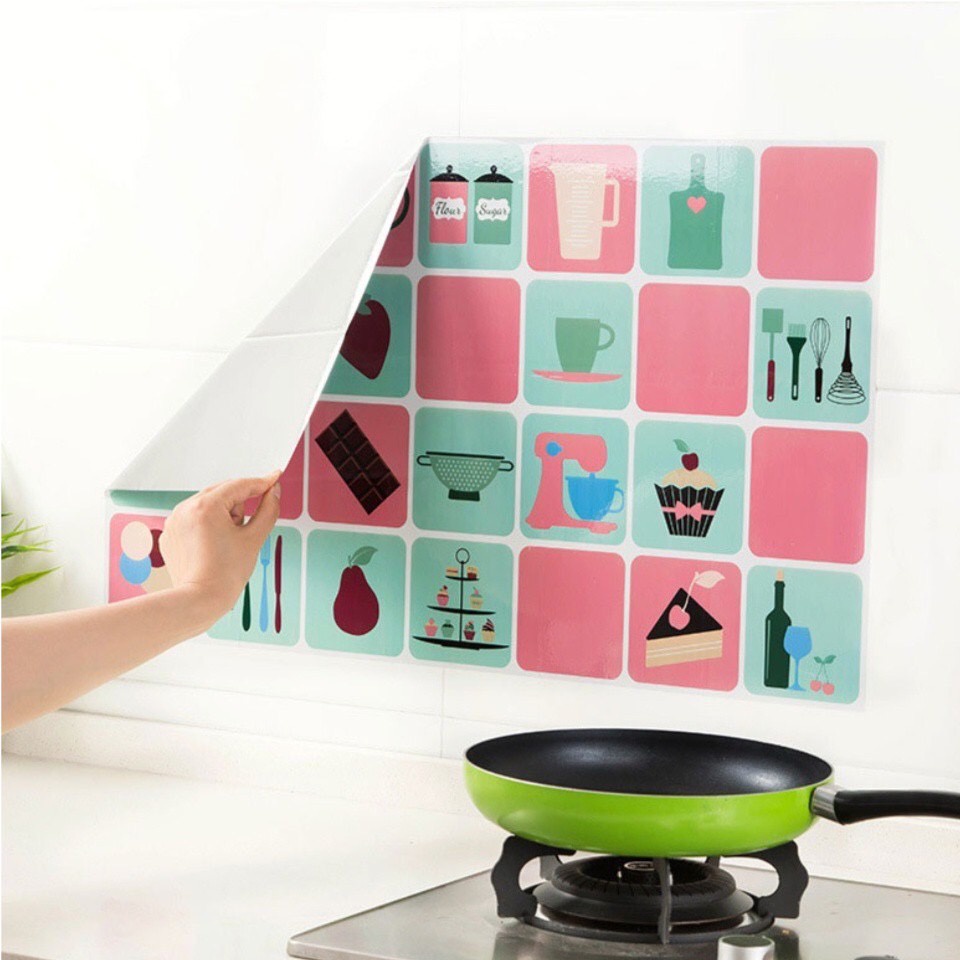 GaGiNang สติ๊กเกอร์ติดผนัง กันน้ำมัน แผ่นฟอยล์กันน้ำมัน สติกเกอร์ฟอยล์อลูมิเนียม วอลเปเปอร์กันน้ำมัน ติดผนังห้องครัว