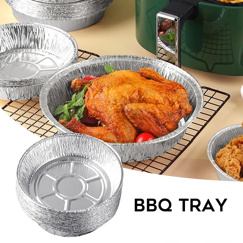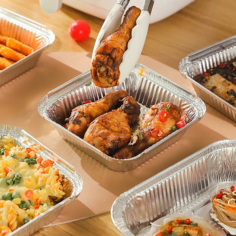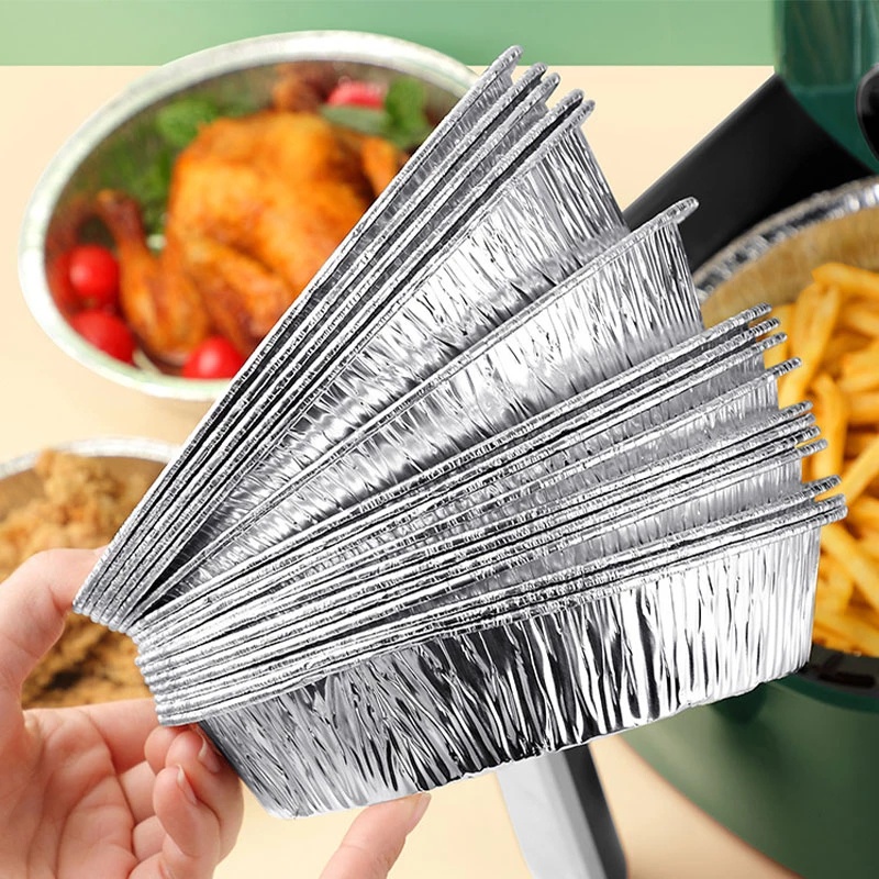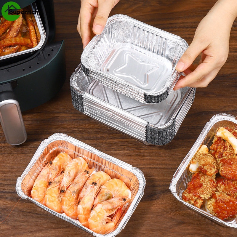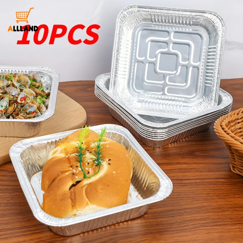 10ชิ้นน้ํามันหลักฐานทอดอากาศถาดทนความร้อนดีบุกฟอยล์ชามสําหรับอบบาร์บีคิวปิกนิกซื้อกลับบ้านหนาฟอยล์ภาชนะบรรจุอาหารกระทะอลูมิเนียมไม่ติดถาดนึ่ง