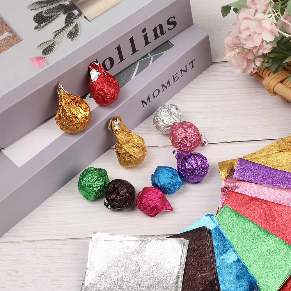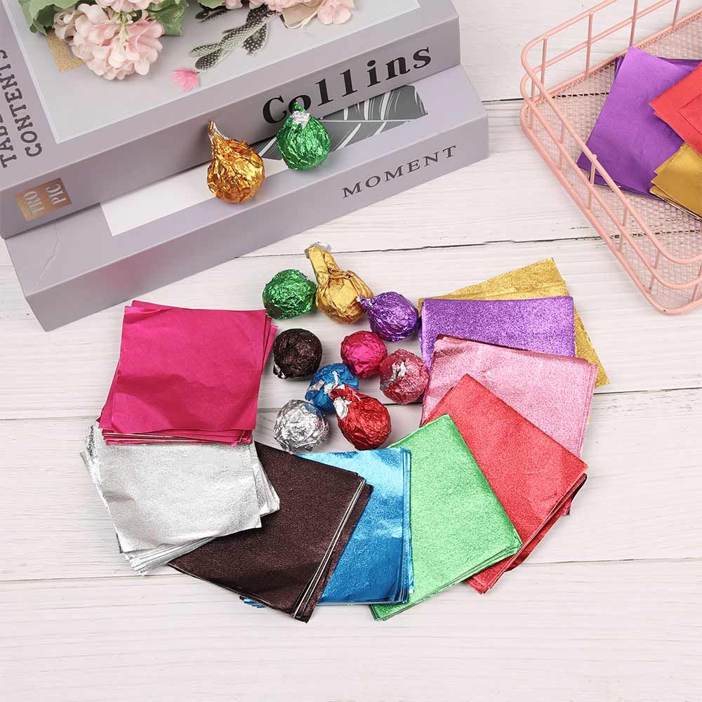 Ly แผ่นฟอยล์อลูมิเนียมฟอยล์ Diy สําหรับใช้ในการเย็บผ้าช็อคโกแลตลายนูนสีทองหลากสี 100ชิ้น