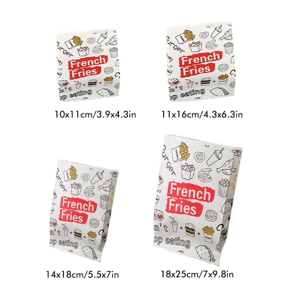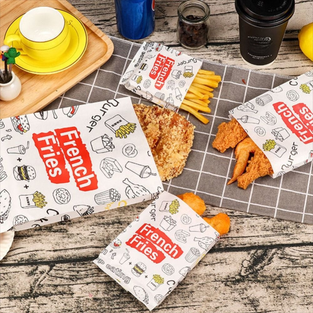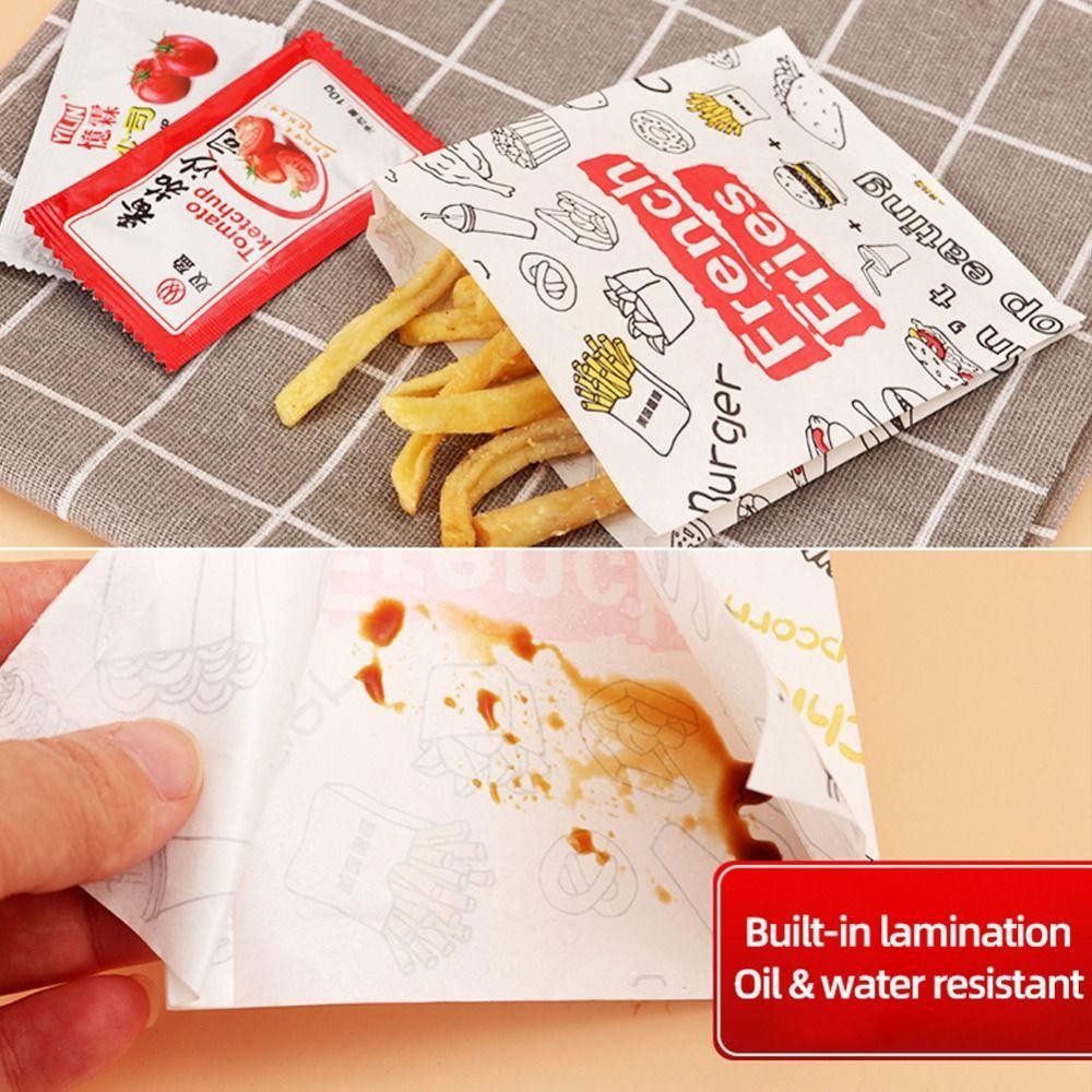 MEERR 100 ชิ้นถุงกระดาษกันน้ํามัน,ถุงกระดาษกันน้ํา Non-stick Greaseproof,แบบพกพาทิ้ง Wrapper ถุงบรรจุภัณฑ์อาหาร French Fries แซนวิชแพนเค้ก Burger