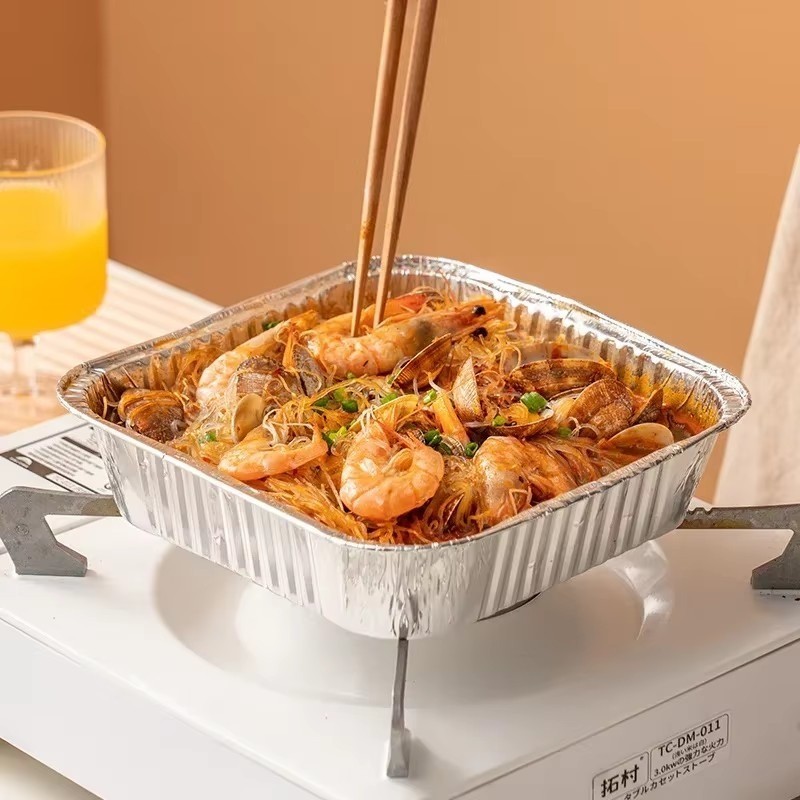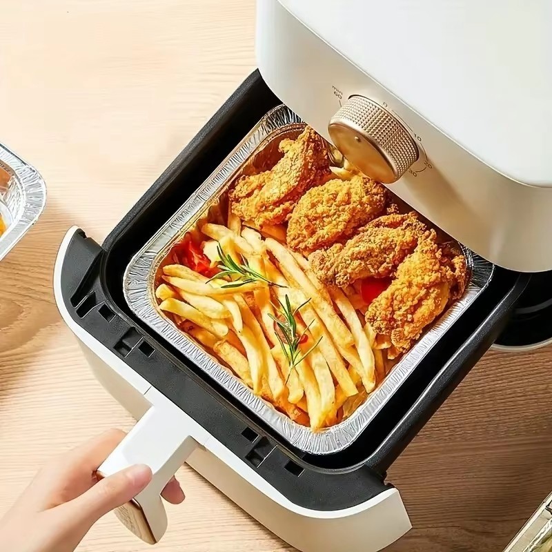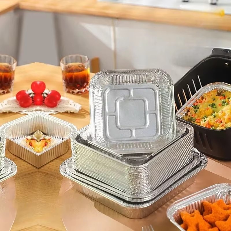 [3-5 วันมาถึง] กล่องฟอยล์ดีบุกหม้อทอดอากาศทรงสี่เหลี่ยมขนาด 7/8/9 นิ้ว-ถาดนึ่งหนากันน้ํามันไม่ติดทนความร้อน-ชามฟอยล์ดีบุกอลูมิเนียม-สําหรับอบบาร์บีคิวปิคนิค-ครัวเบเกอรี่เครื่องมื