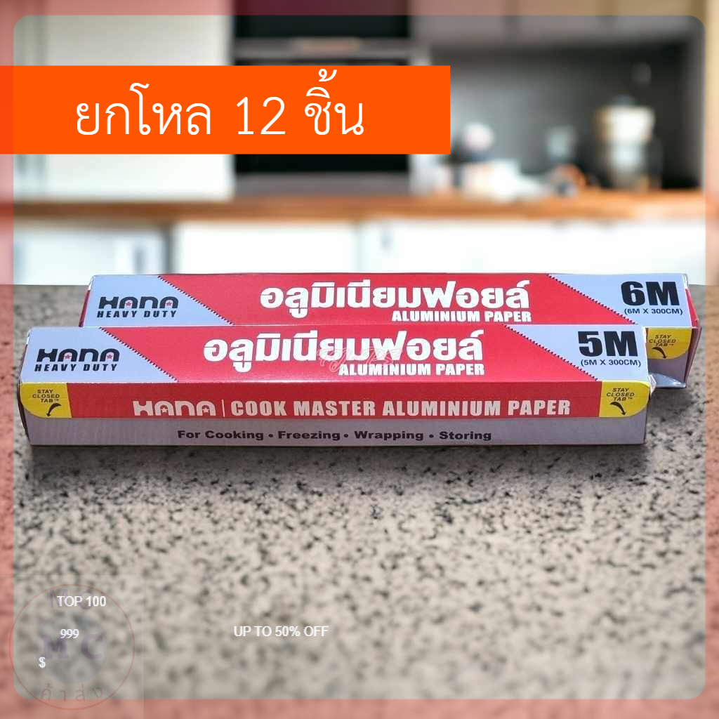 (ยกโหล12ชิ้น) ฟอยล์ห่ออาหาร ยาว5เมตร ฟอยล์อลูมิเนียม สำหรับทำอาหาร อลูมิเนียมฟอยล์ ฟอยล์อบขนม กระดาษฟอยล์