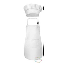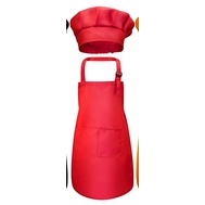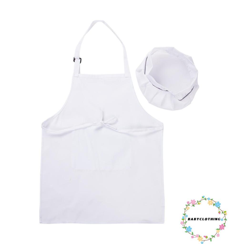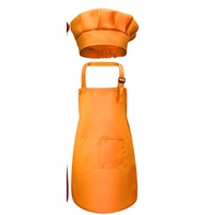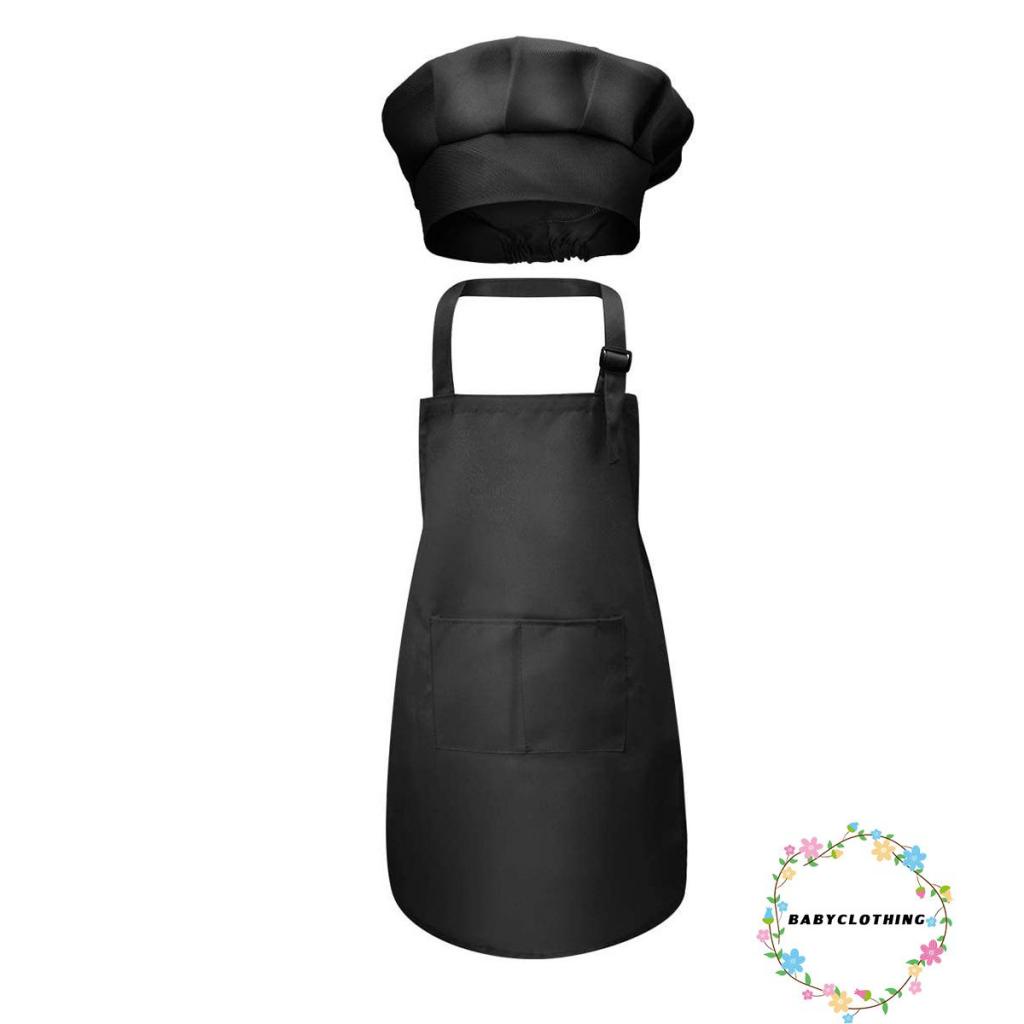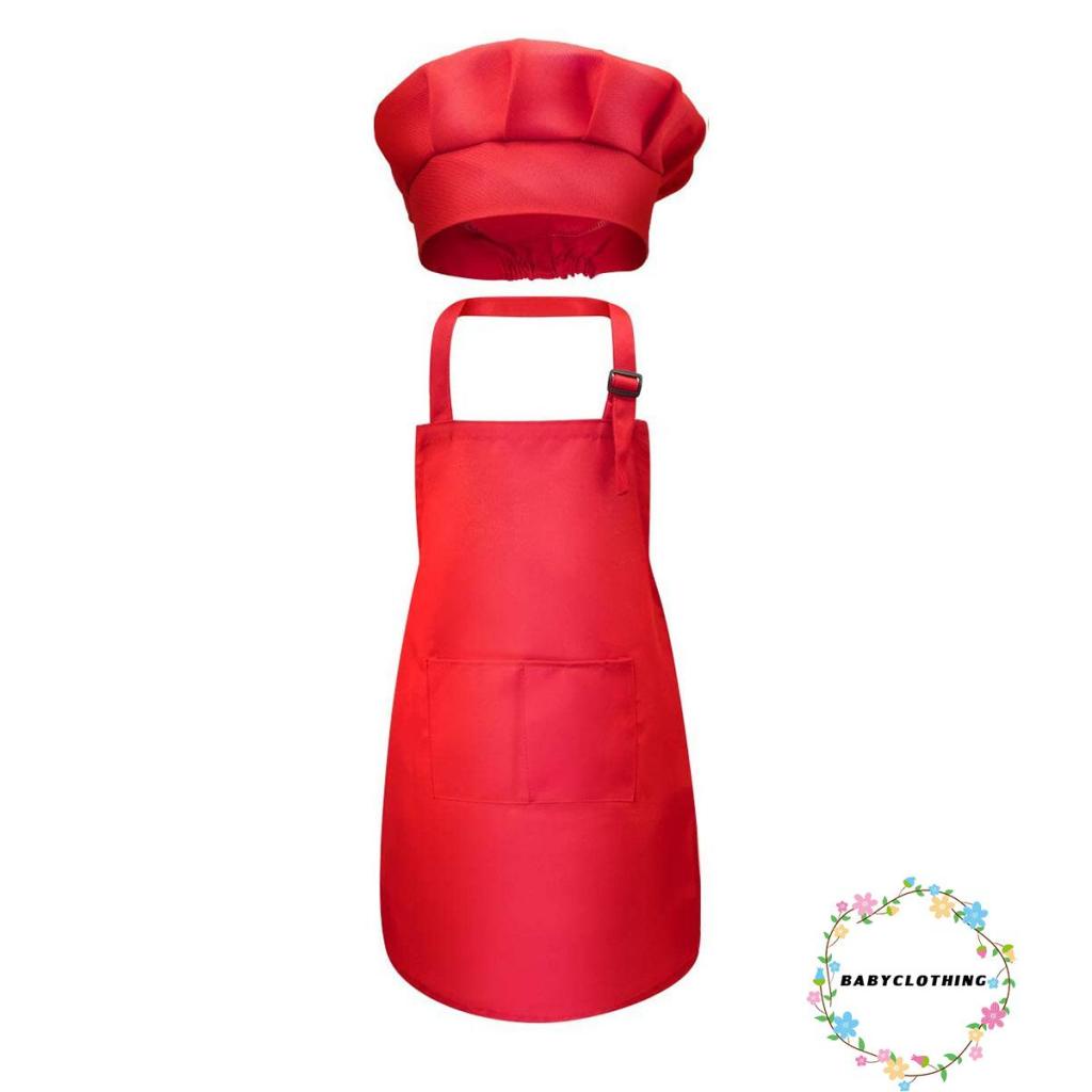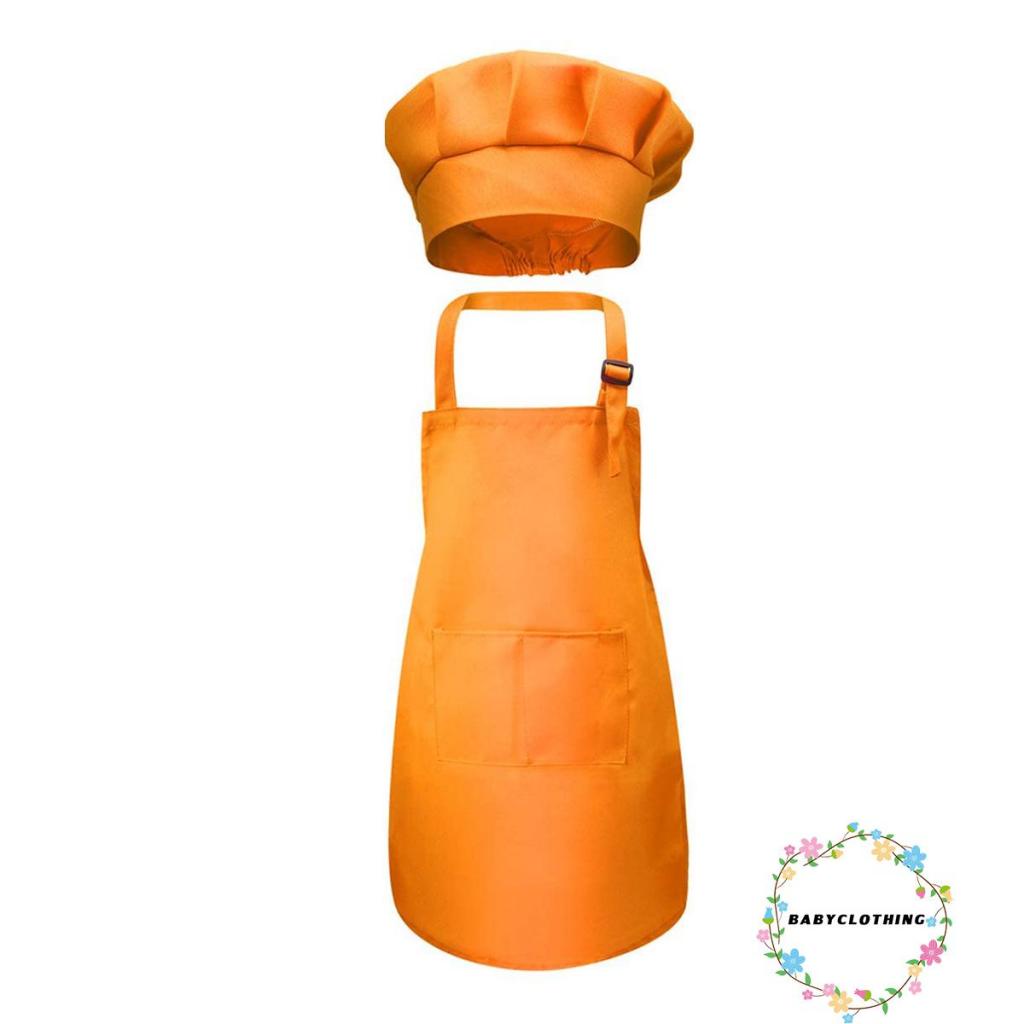 เสื้อผ้าเด็ก-เด็กหัตถกรรมผ้ากันเปื้อนและหมวกชุดสีทึบด้านหน้ากระเป๋าผ้ากันเปื้อนเอี๊ยมด้วยวงยืดหยุ่นหมวกทําอาหาร