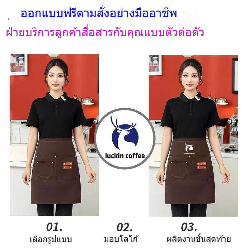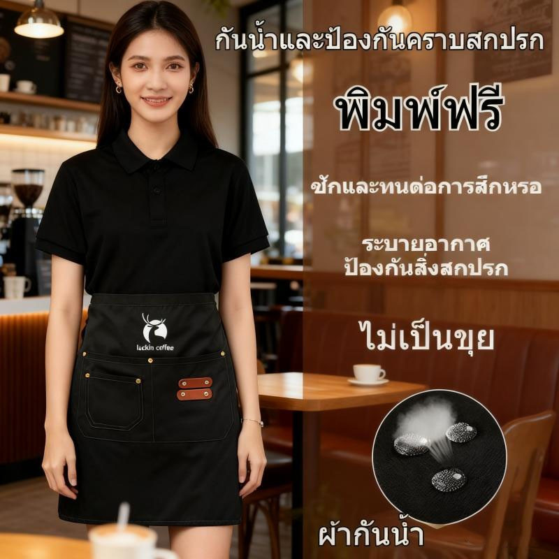 ✨✨แบรนด์ผ้ากันเปื้อนยีนส์ กันน้ำ สำหรับ Coffee Shop Apron ผ้ากันเปื้อนกันน้ำ เอี้ยมกันเปื้อน ผ้ากันเปื้อนกาแ Unisex